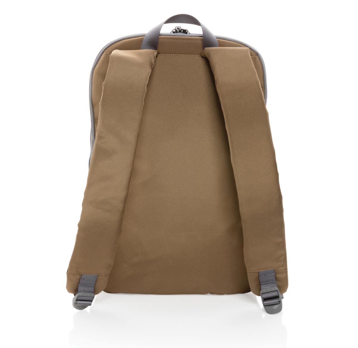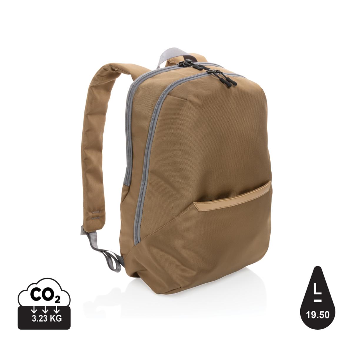 Look sharp in and out of the office with this sleek looking minimalistic design backpack. The backpack features a separate 15.6 inch laptop compartment and a zipper front pocket. The exterior material and lining is made with recycled polyester. With AWARE?? tracer that validates the genuine use of recycled materials. Each bag saves 19.5 litres of water and has reused 32.7 0.5L PET bottles. 2% of proceeds of each Impact product sold will be donated to Water.org. PVC free.