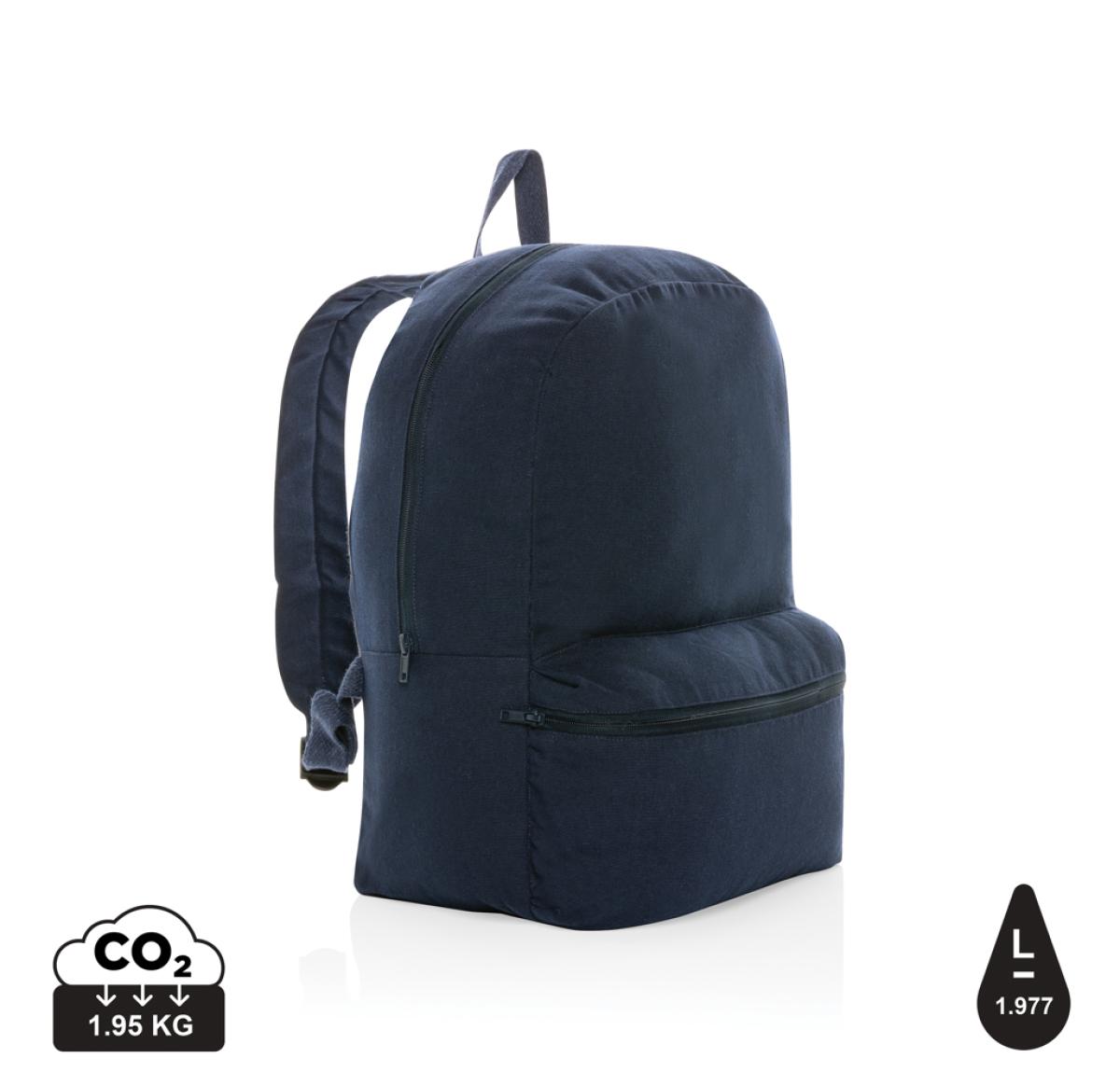 This 285 gsm recycled canvas backpack is a classic for everyday use. This bag features a spacious front and back pocket to hold your other daily essentials. The recycled canvas is undyed and used in its raw form, without chemicals from dyeing or bleaching. With AWARE?? tracer that validates the genuine use of recycled materials. Each backpack saves on average 2117 litres of water. 2% of proceeds of each Impact product sold will be donated to Water.org. Composition 70% recycled cotton and 30% recycled polyester.