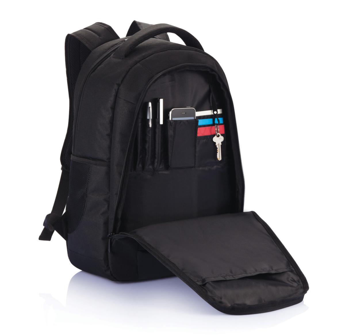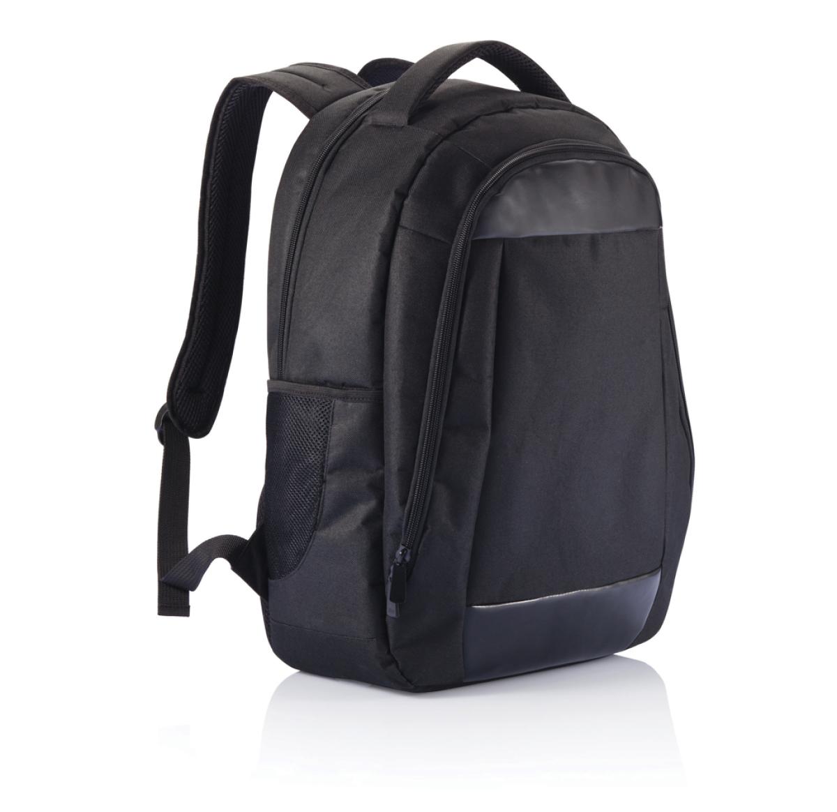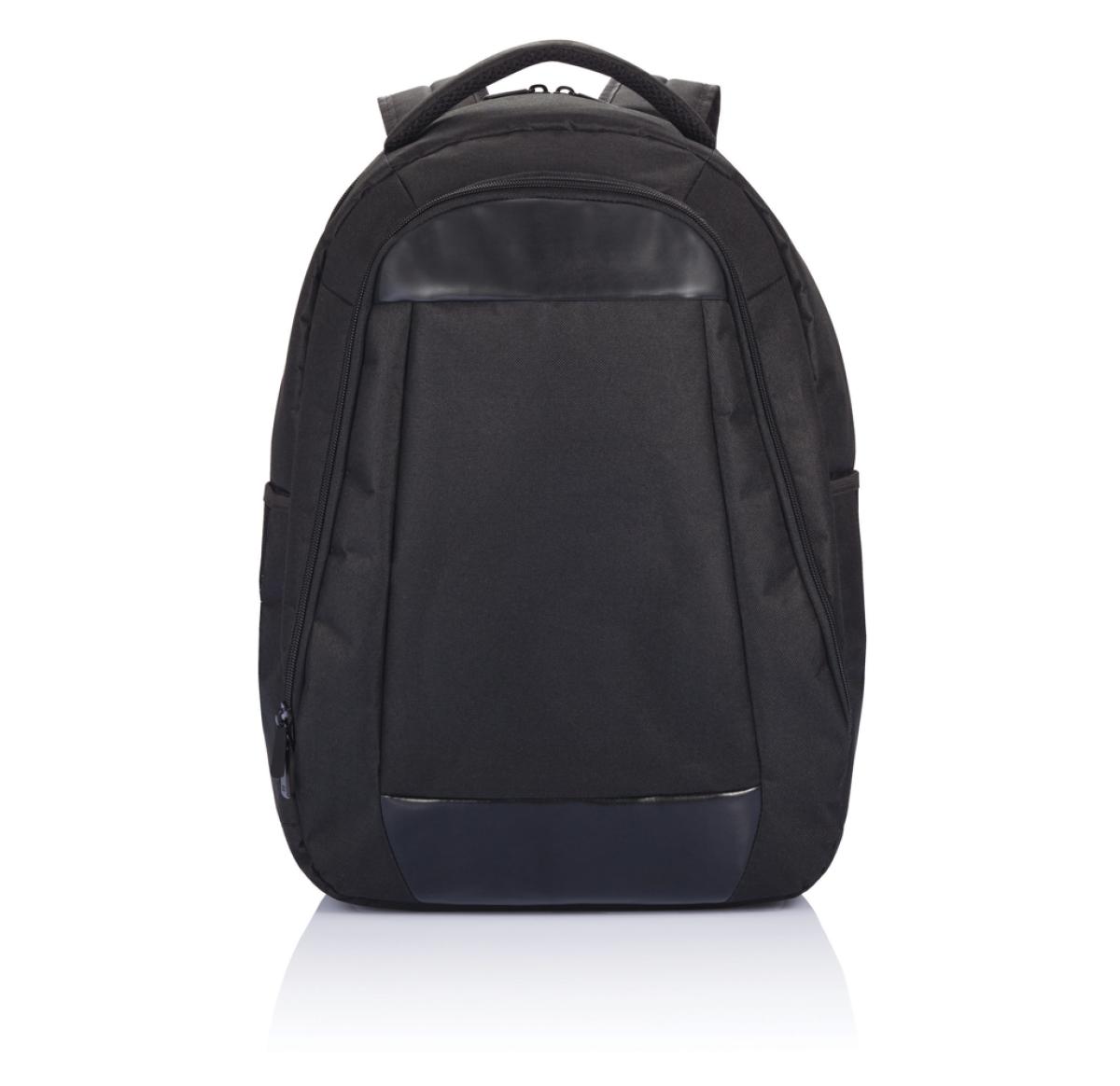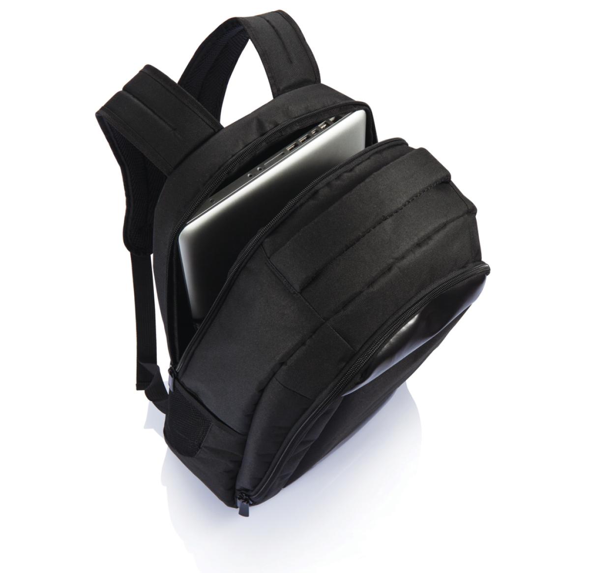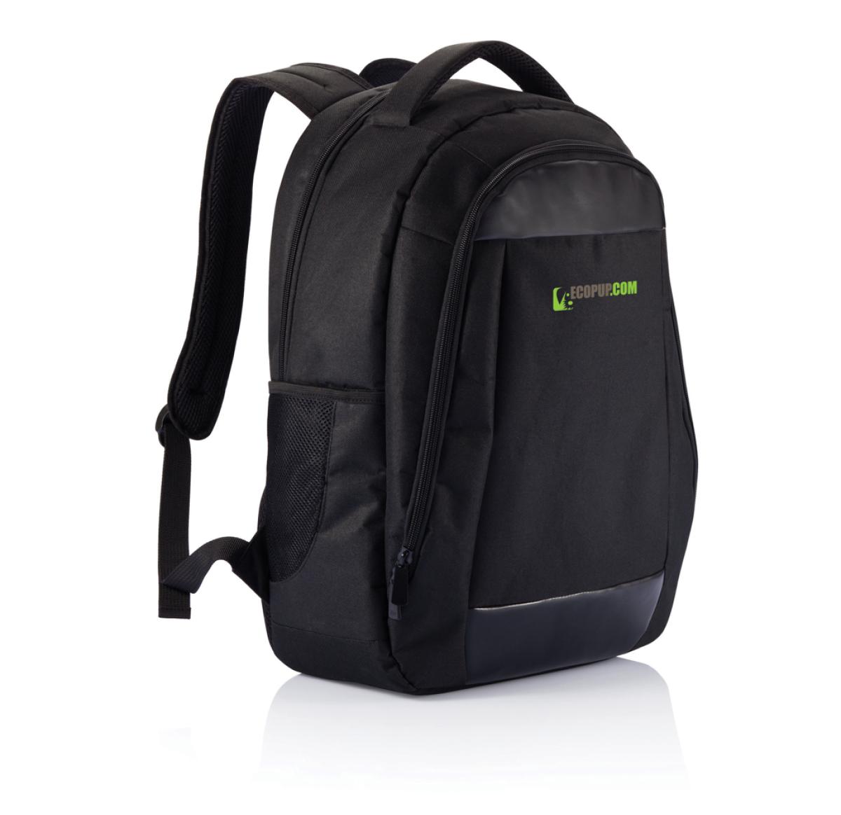 Look sharp in and out of the office with this classic looking laptop backpack. The backpack features a separate 15.6 inch laptop compartment and a zipper front pocket. The exterior material and lining is made with recycled polyester. With AWARE?? tracer that validates the genuine use of recycled materials. Each bag saves 13 litres of water and has reused 22 0.5L PET bottles. 2% of proceeds of each Impact product sold will be donated to Water.org. PVC free.