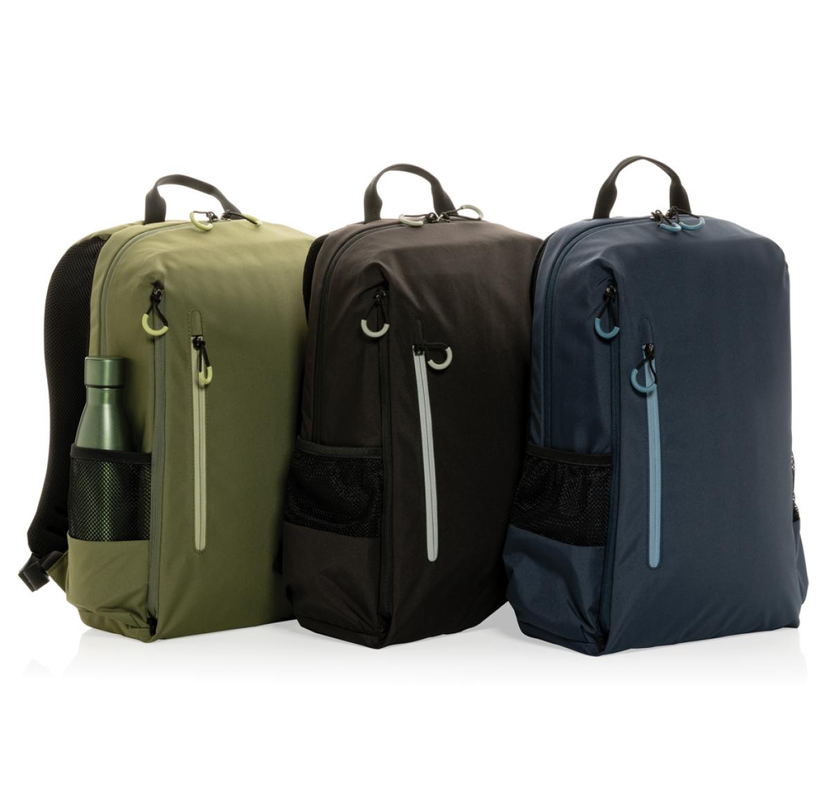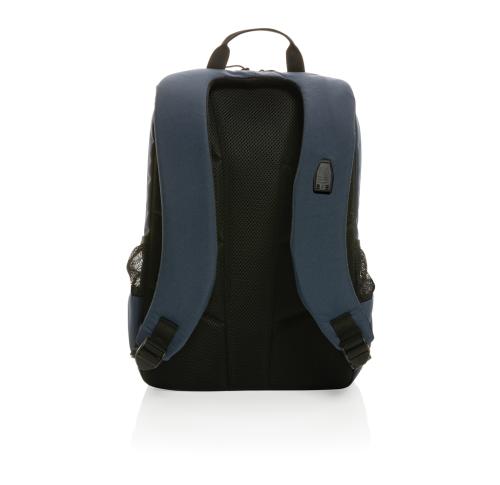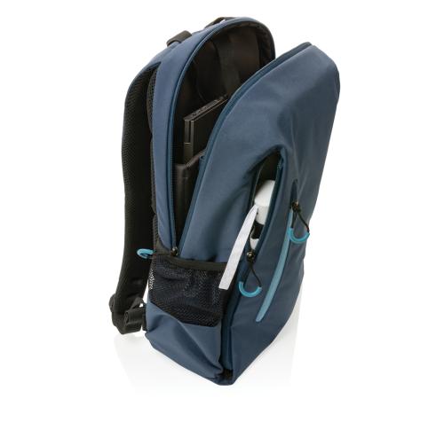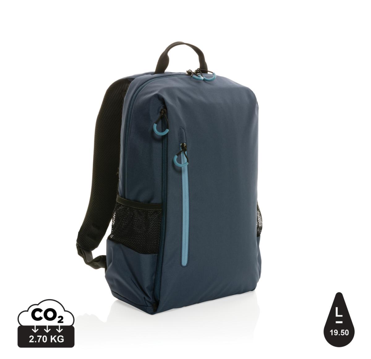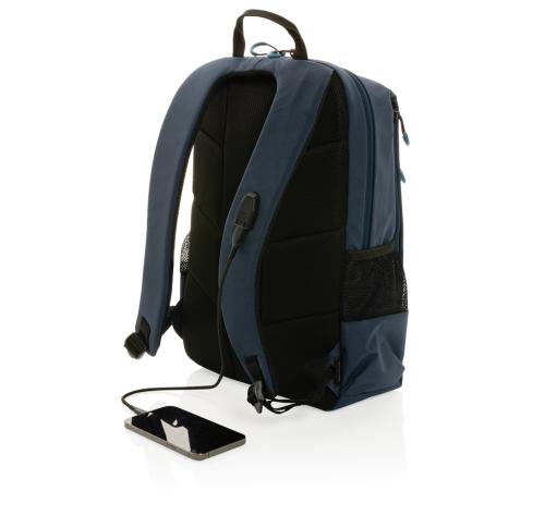 The Lima is a simple, practical and durable everyday backpack with 2 side pockets for water bottles or your umbrella. Convenient USB output on the strap. Padded 15.6" compartment for laptop computer as well as several spacious compartments and RFID protected sleeve pockets. With AWARE?? tracer that validates the genuine use of recycled materials. Each backpack saves 19.5 litres of water and has reused 32.8 bottles. 2% of proceeds of each Impact product sold will be donated to Water.org. Composition 100% recycled polyester. Registered design??