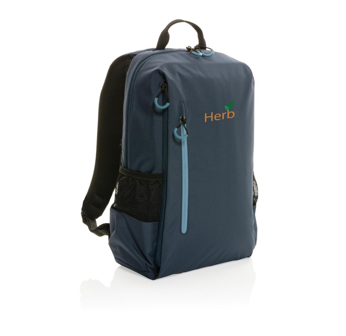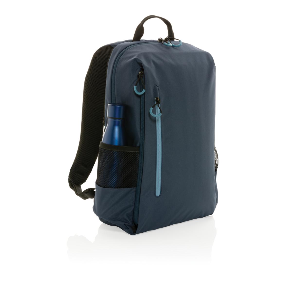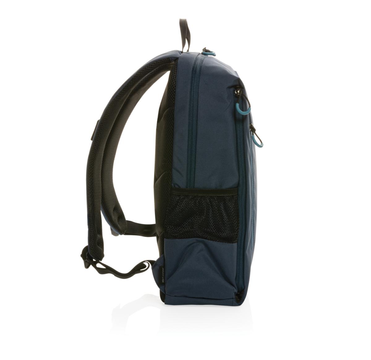 The Lima is a simple, practical and durable everyday backpack with 2 side pockets for water bottles or your umbrella. Convenient USB output on the strap. Padded 15.6" compartment for laptop computer as well as several spacious compartments and RFID protected sleeve pockets. With AWARE?? tracer that validates the genuine use of recycled materials. Each backpack saves 19.5 litres of water and has reused 32.8 bottles. 2% of proceeds of each Impact product sold will be donated to Water.org. Composition 100% recycled polyester. Registered design??