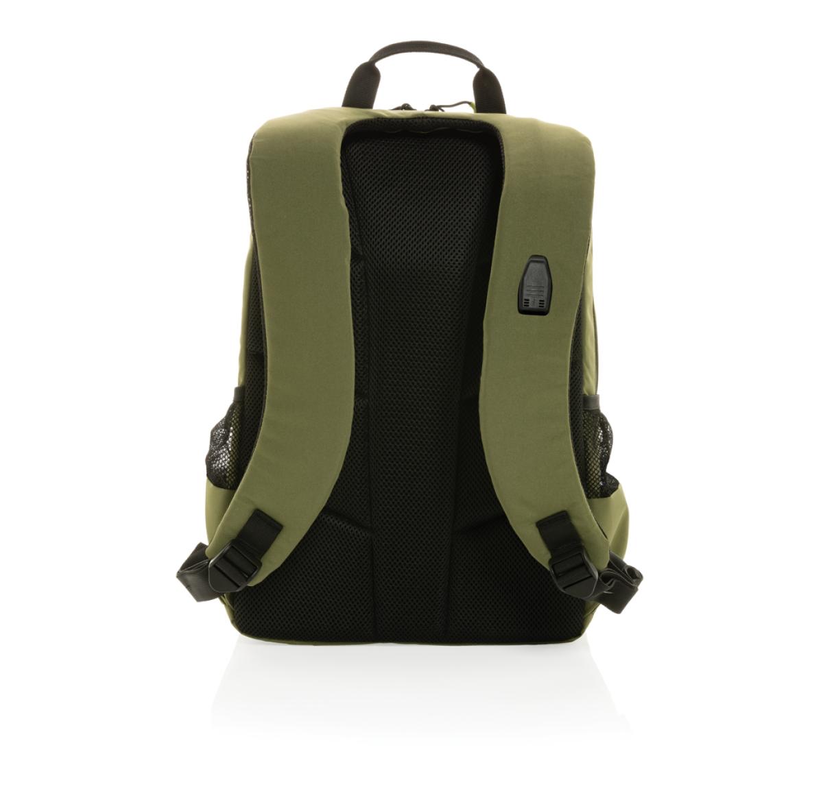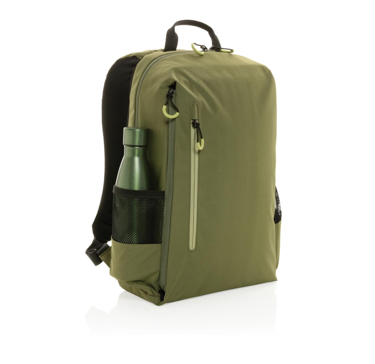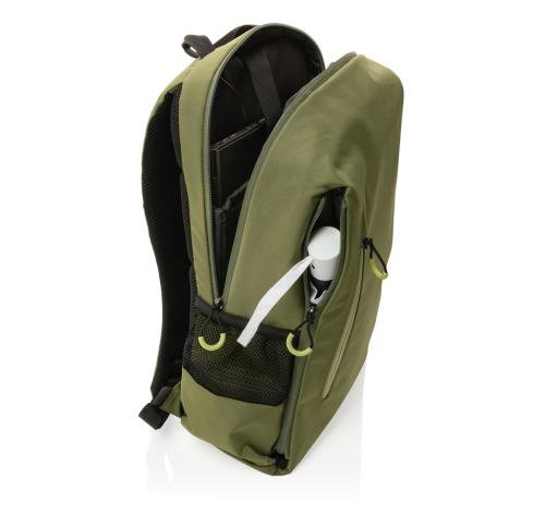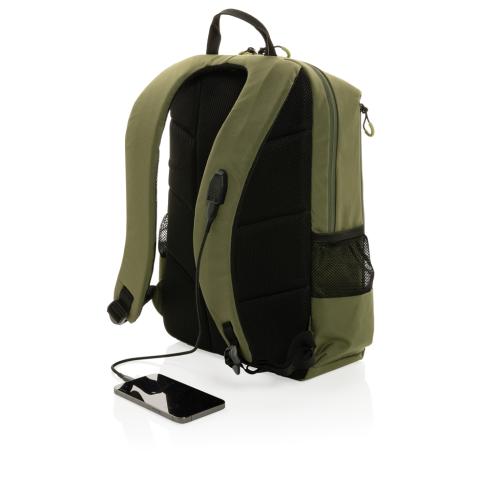 The Lima is a simple, practical and durable everyday backpack with 2 side pockets for water bottles or your umbrella. Convenient USB output on the strap. Padded 15.6" compartment for laptop computer as well as several spacious compartments and RFID protected sleeve pockets. With AWARE?? tracer that validates the genuine use of recycled materials. Each backpack saves 19.5 litres of water and has reused 32.8 bottles. 2% of proceeds of each Impact product sold will be donated to Water.org. Composition 100% recycled polyester. Registered design??