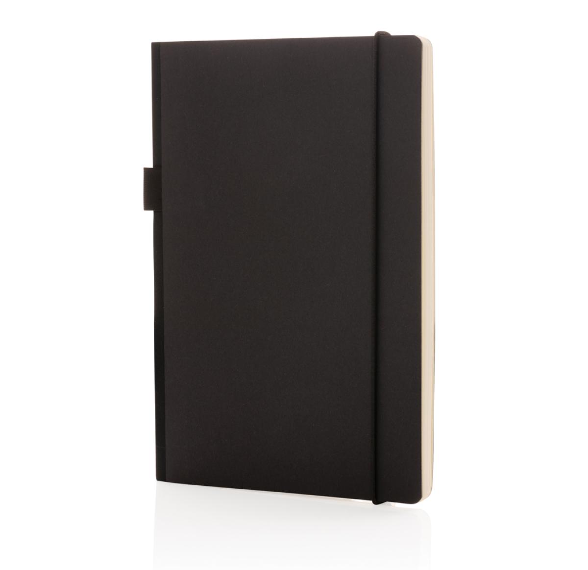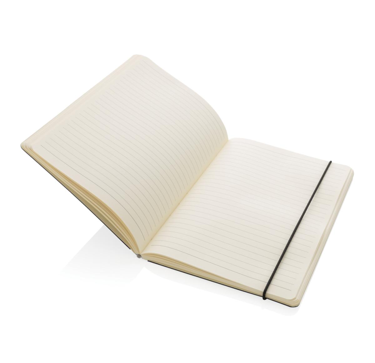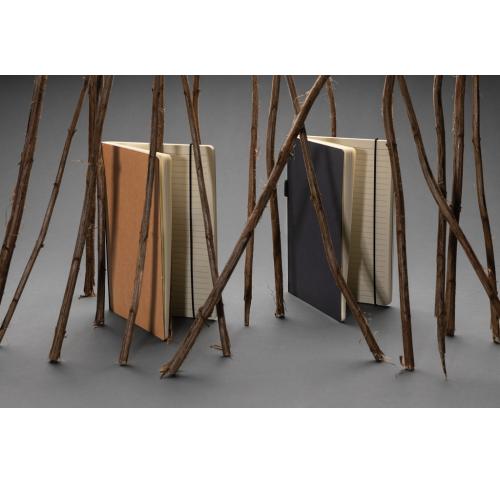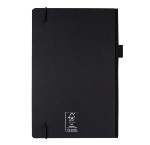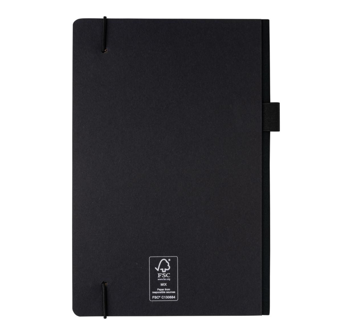 This FSC?? deluxe hardcover notebook features a FSC-certified paper cover with elastic pen loop and ribbon page marker in matching black accent. In the back you willl find a pocket to store your loose notes. 80 sheets/160 pages of cream, FSC??-certified lined paper.