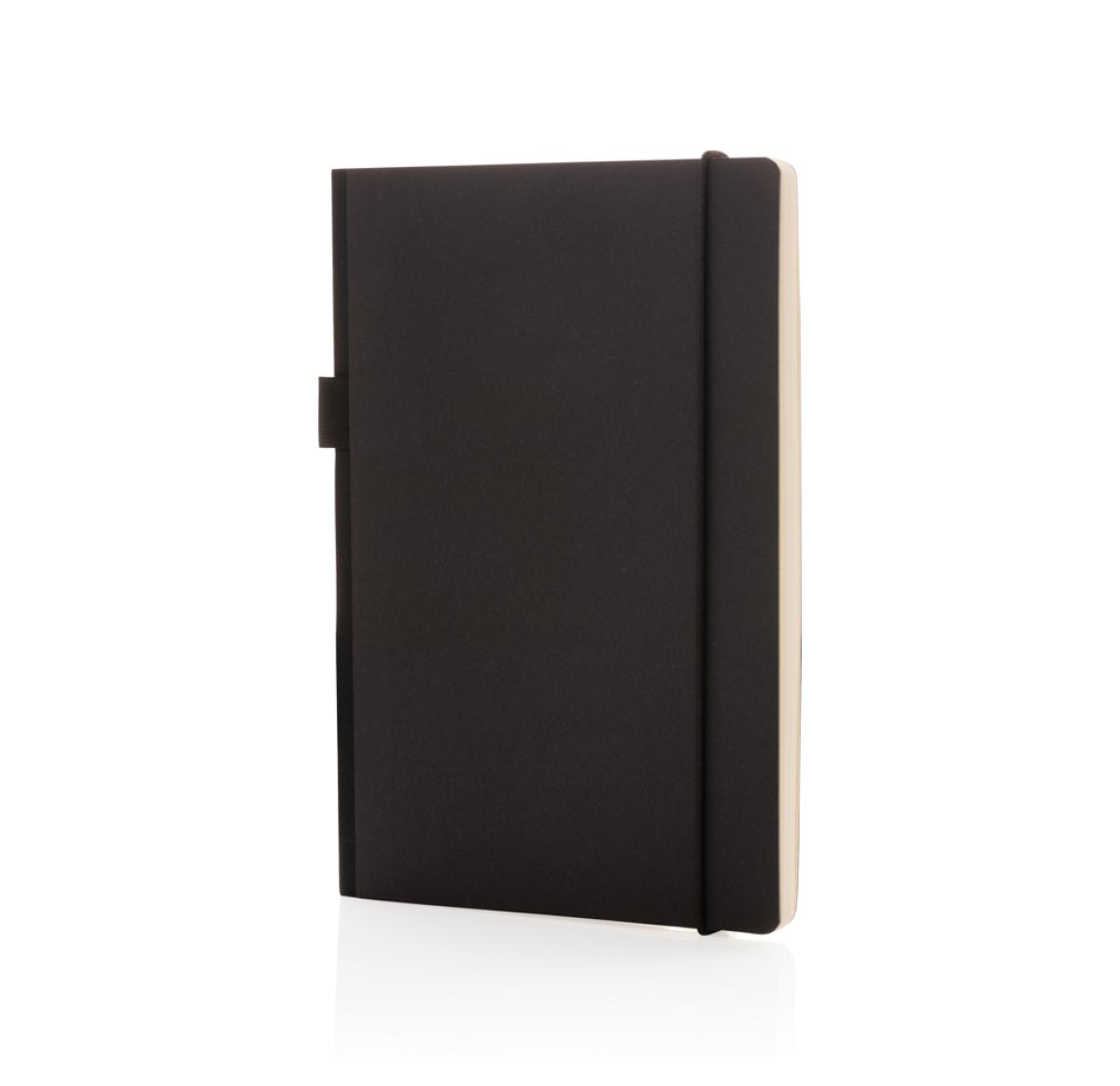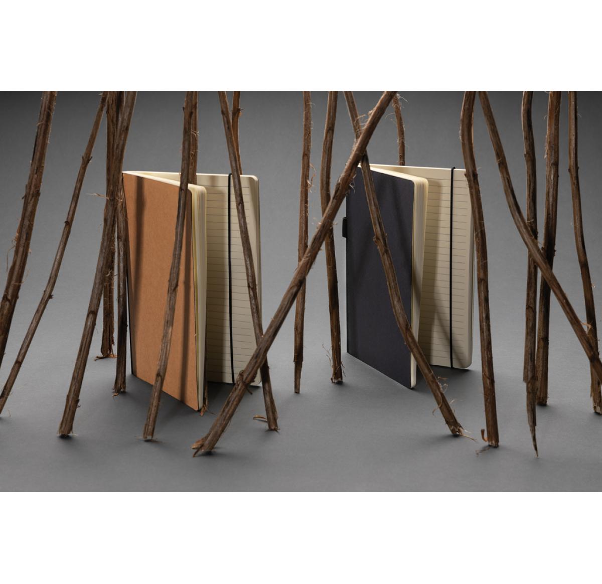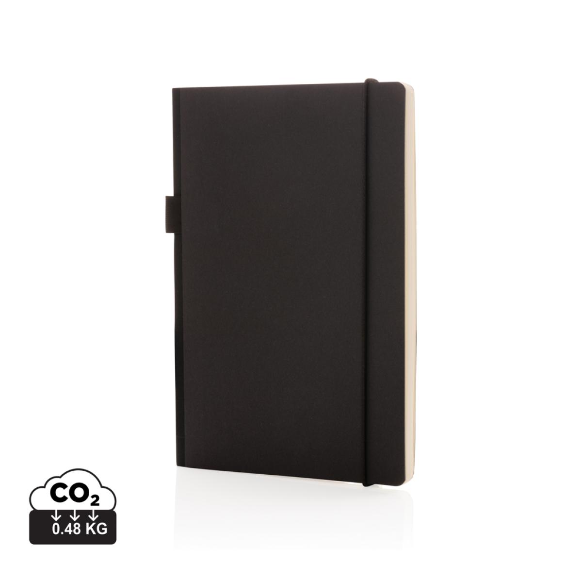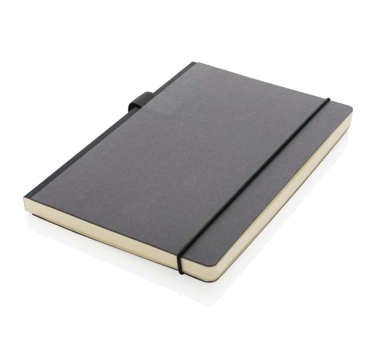 This FSC?? deluxe hardcover notebook features a FSC-certified paper cover with elastic pen loop and ribbon page marker in matching black accent. In the back you willl find a pocket to store your loose notes. 80 sheets/160 pages of cream, FSC??-certified lined paper.