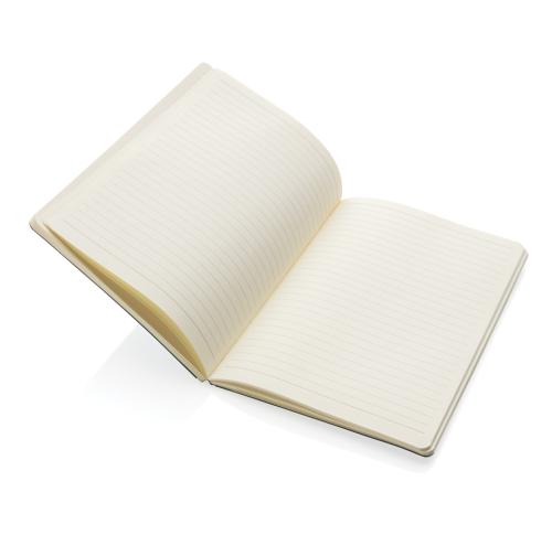 This FSC?? deluxe hardcover notebook features a FSC-certified paper cover with elastic pen loop and ribbon page marker in matching black accent. In the back you willl find a pocket to store your loose notes. 80 sheets/160 pages of cream, FSC??-certified lined paper.