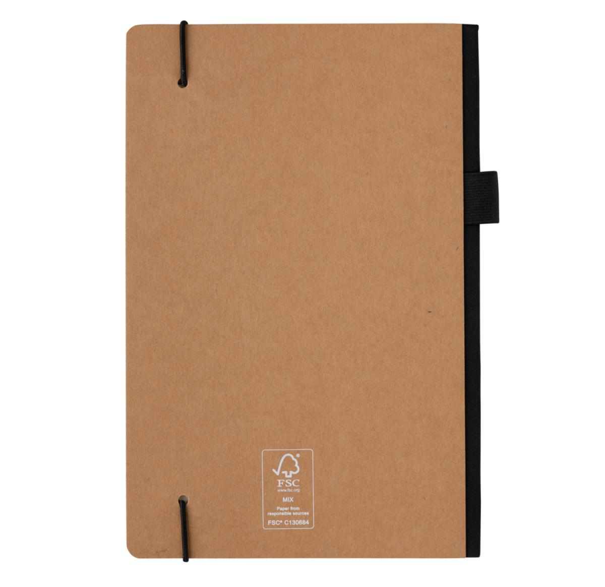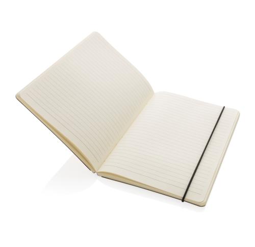 This FSC?? deluxe hardcover notebook features a FSC-certified paper cover with elastic pen loop and ribbon page marker in matching black accent. In the back you willl find a pocket to store your loose notes. 80 sheets/160 pages of cream, FSC??-certified lined paper.