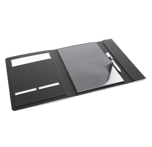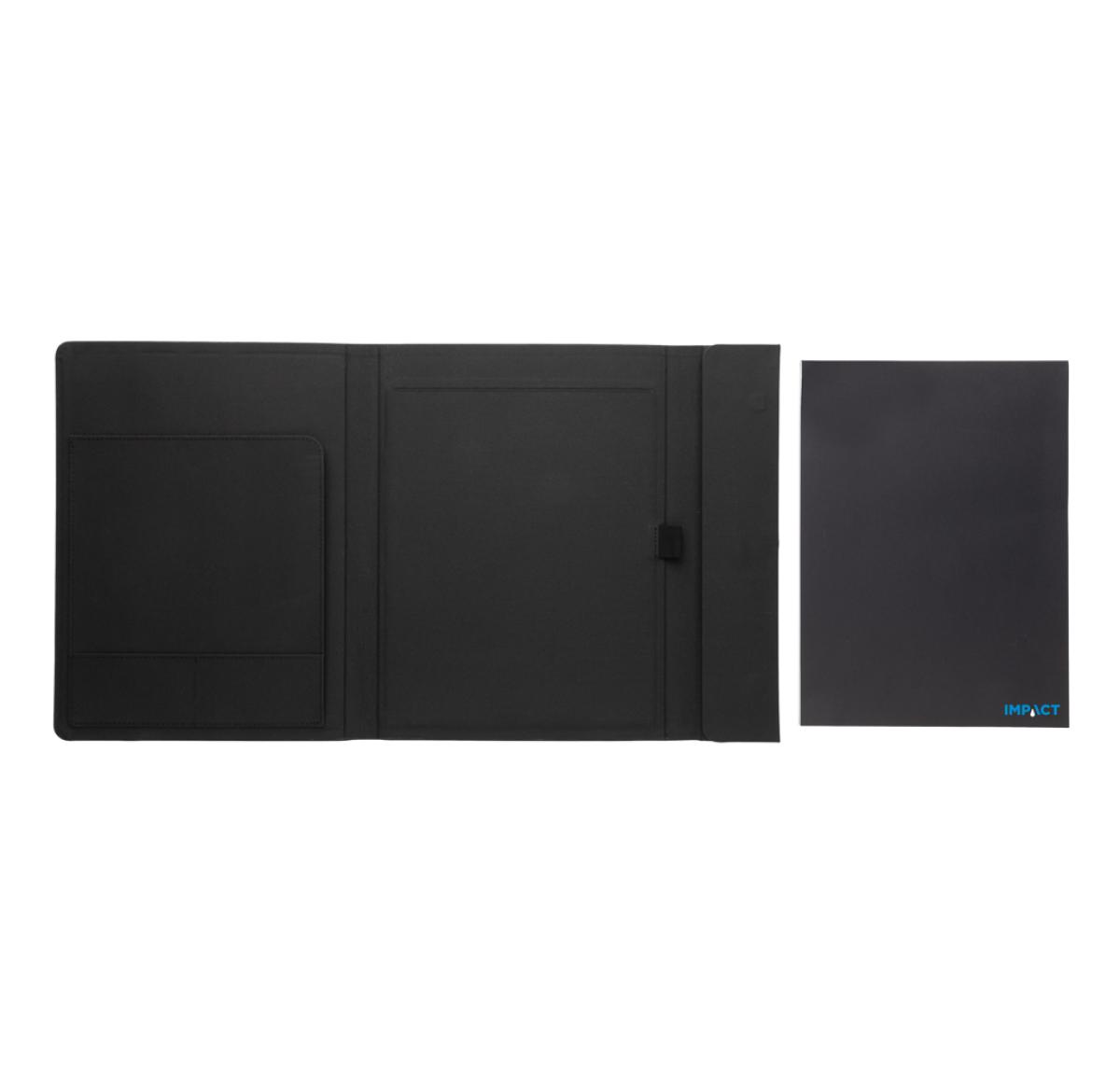 Keep all your work essentials organised with this beautiful A4 Aware?? RPET portfolio with magnetic closure. Inside you will find 1 big sleeve pocket, 2 additional pockets and a pen loop. Including FSC recycled paper notepad. The notepad contains 20 sheets cream coloured lined 70gm/s recycled paper. Interior and exterior 100% recycled polyester. With AWARE?? tracer that validates the genuine use of recycled materials. Each portfolio saves 1.95 litres of water and has reused 3.2 0.5L PET bottles. 2% of proceeds of each Impact product sold will be donated to Water.org. PVC free.