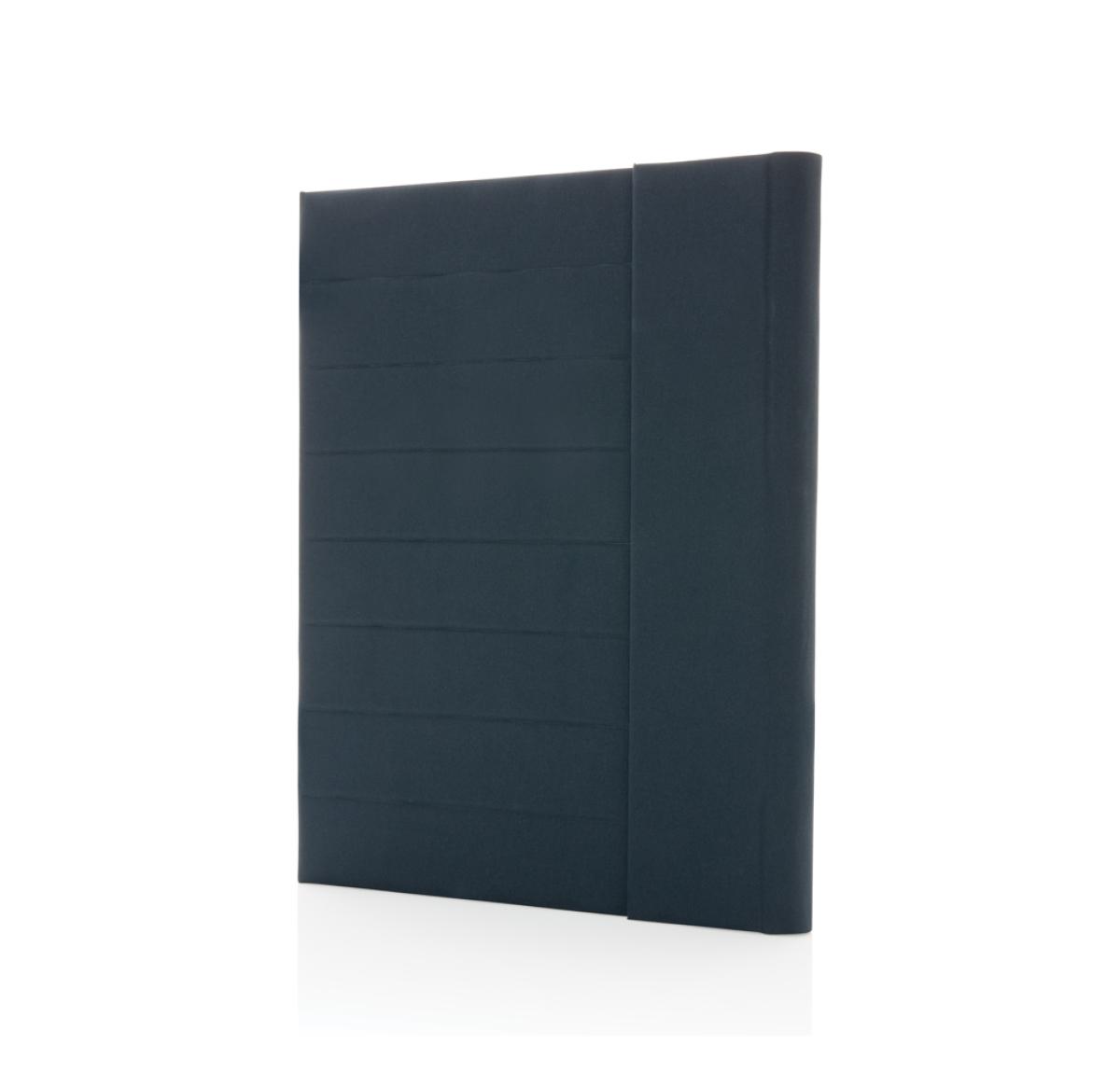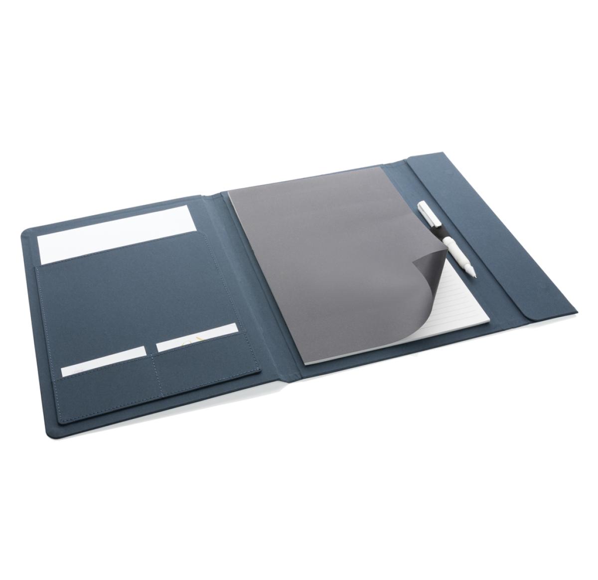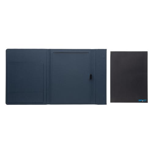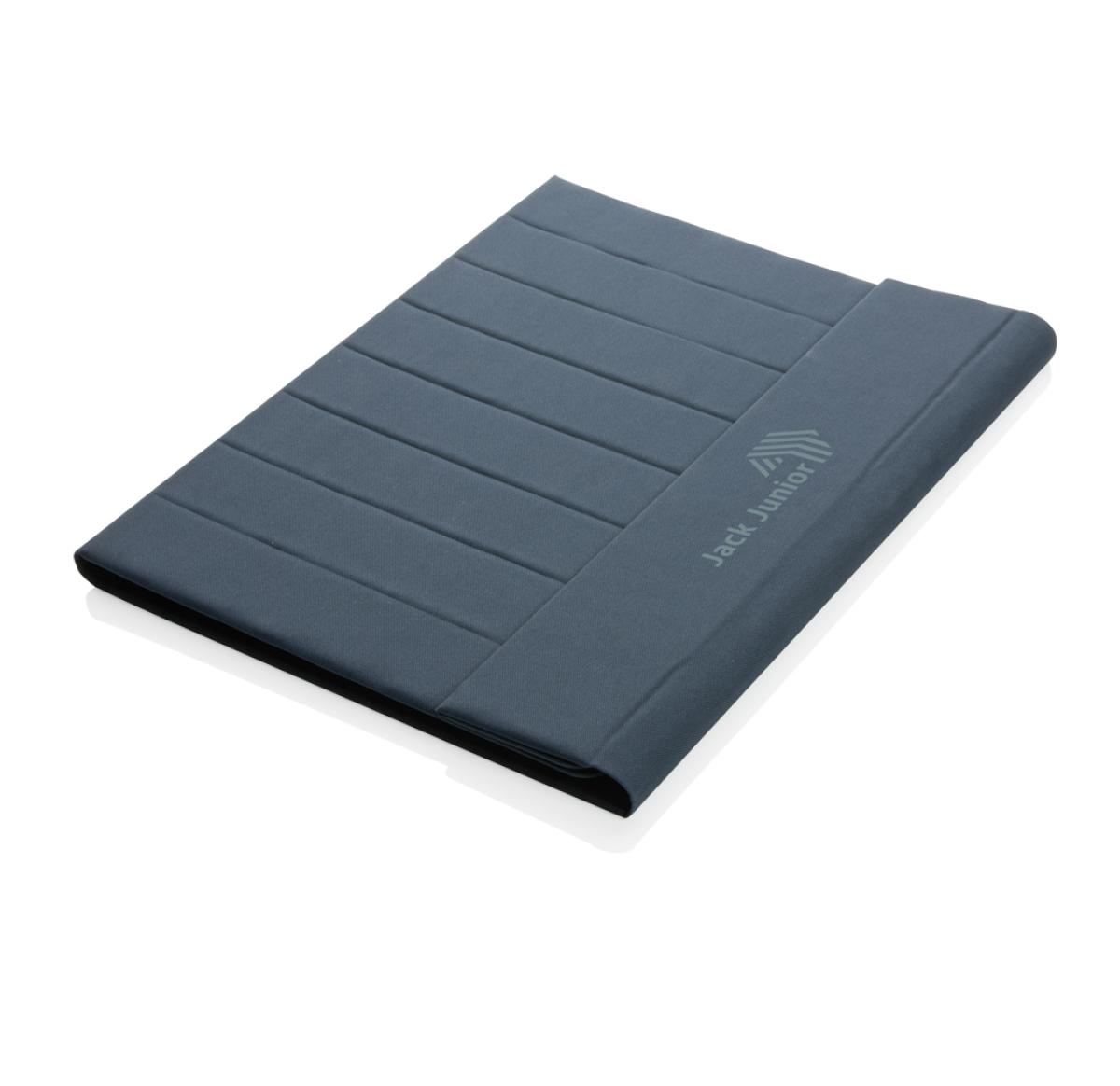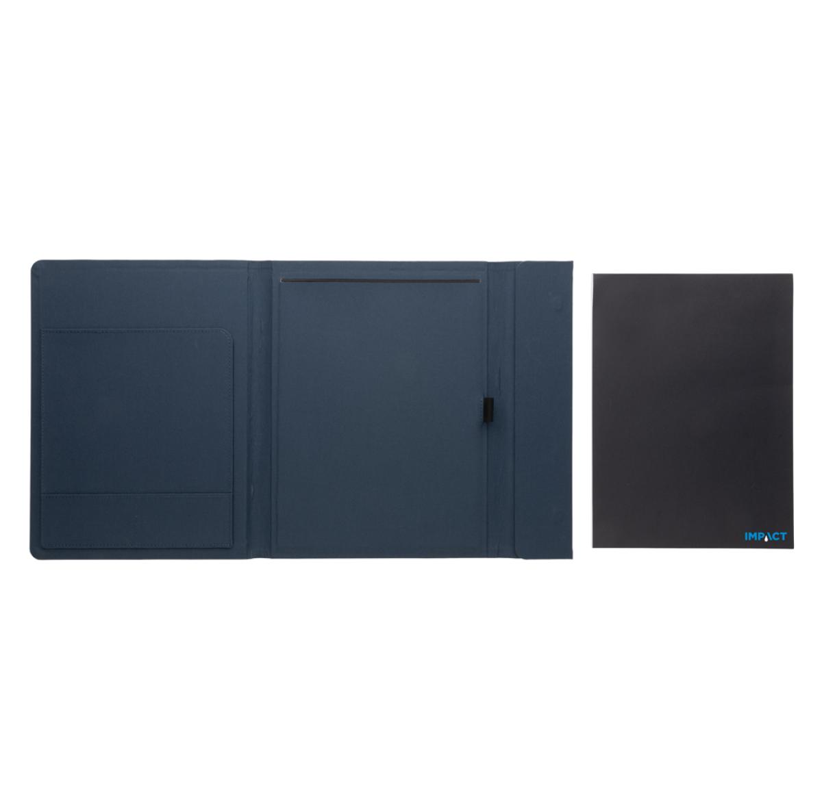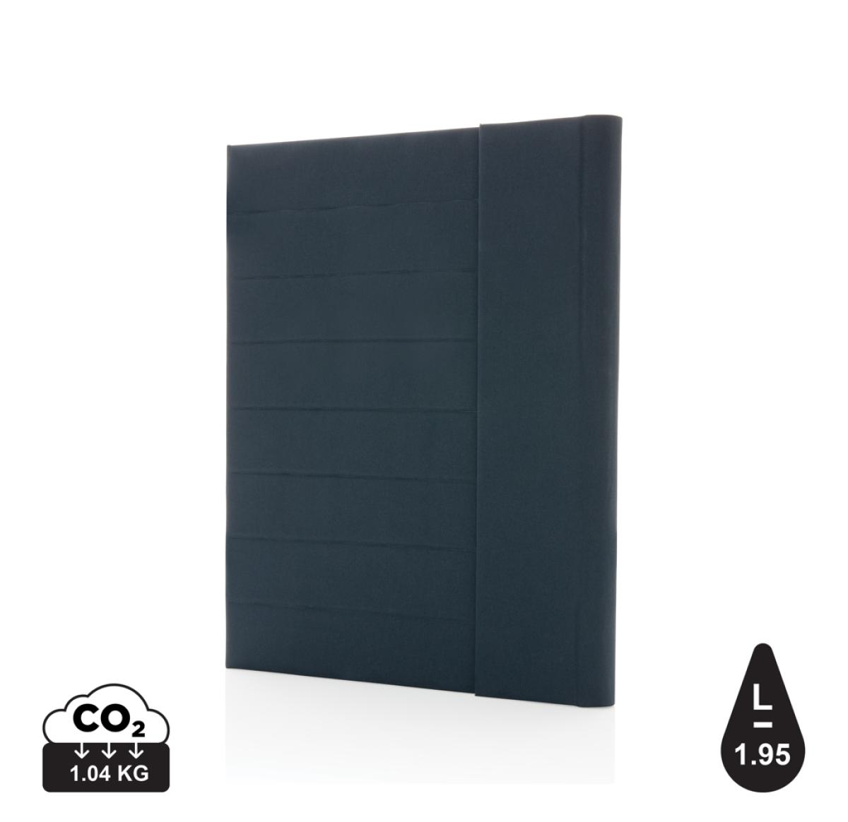 Keep all your work essentials organised with this beautiful A4 Aware?? RPET portfolio with magnetic closure. Inside you will find 1 big sleeve pocket, 2 additional pockets and a pen loop. Including FSC recycled paper notepad. The notepad contains 20 sheets cream coloured lined 70gm/s recycled paper. Interior and exterior 100% recycled polyester. With AWARE?? tracer that validates the genuine use of recycled materials. Each portfolio saves 1.95 litres of water and has reused 3.2 0.5L PET bottles. 2% of proceeds of each Impact product sold will be donated to Water.org. PVC free.