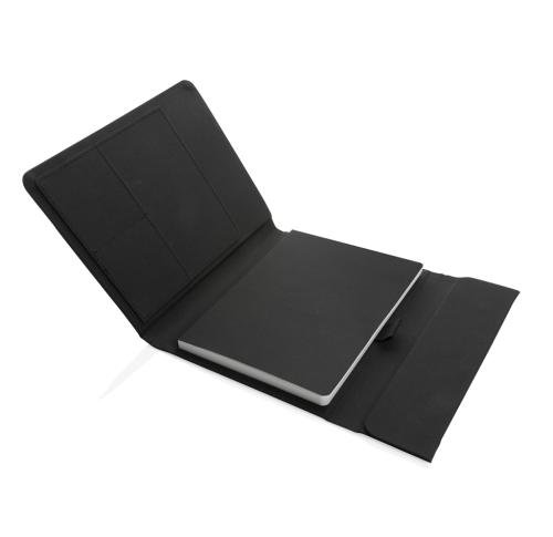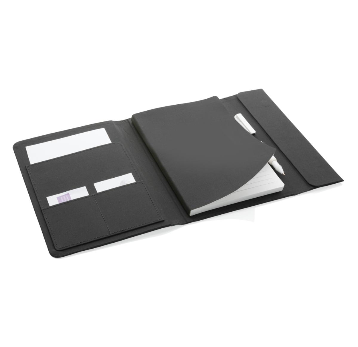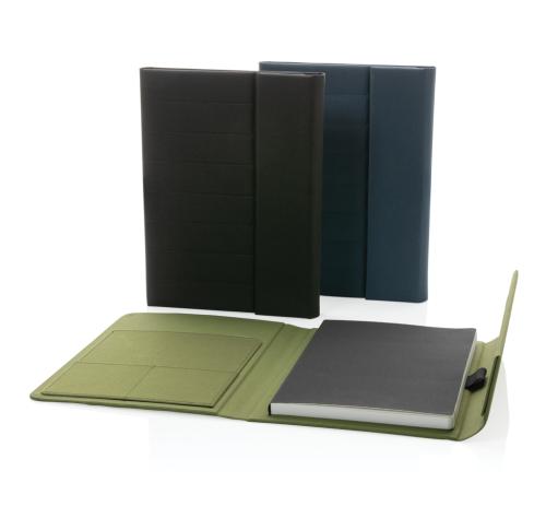 Keep all your work essentials organised in this beautiful A5 Aware?? RPET portfolio. Inside the portfolio you can find a matching notebook. The notebook contains 64 sheets/128 sheets cream coloured lined 80gm/s paper. Inside you will find 1 big sleeve pocket, 2 card slots and a pen loop. Magnetic closure. With AWARE?? tracer that validates the genuine use of recycled materials. Each portfolio saves 3.9 litres of water and has reused 6.5 0.5L PET bottles. 2% of proceeds of each Impact product sold will be donated to Water.org. PVC free.