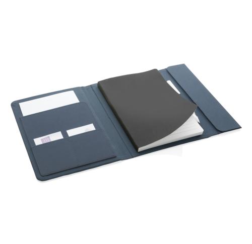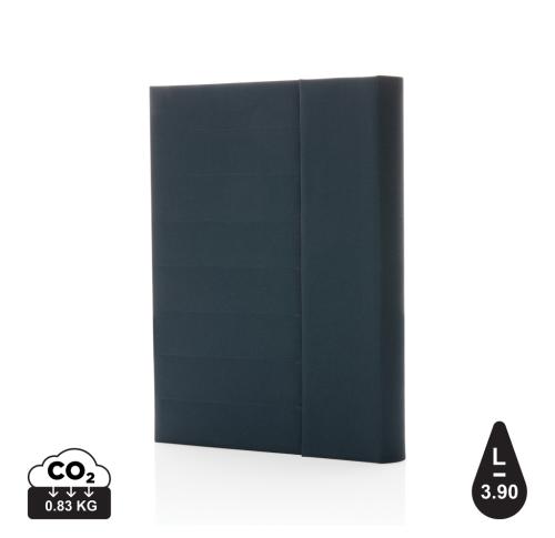Keep all your work essentials organised in this beautiful A5 Aware?? RPET portfolio. Inside the portfolio you can find a matching notebook. The notebook contains 64 sheets/128 sheets cream coloured lined 80gm/s paper. Inside you will find 1 big sleeve pocket, 2 card slots and a pen loop. Magnetic closure. With AWARE?? tracer that validates the genuine use of recycled materials. Each portfolio saves 3.9 litres of water and has reused 6.5 0.5L PET bottles. 2% of proceeds of each Impact product sold will be donated to Water.org. PVC free.