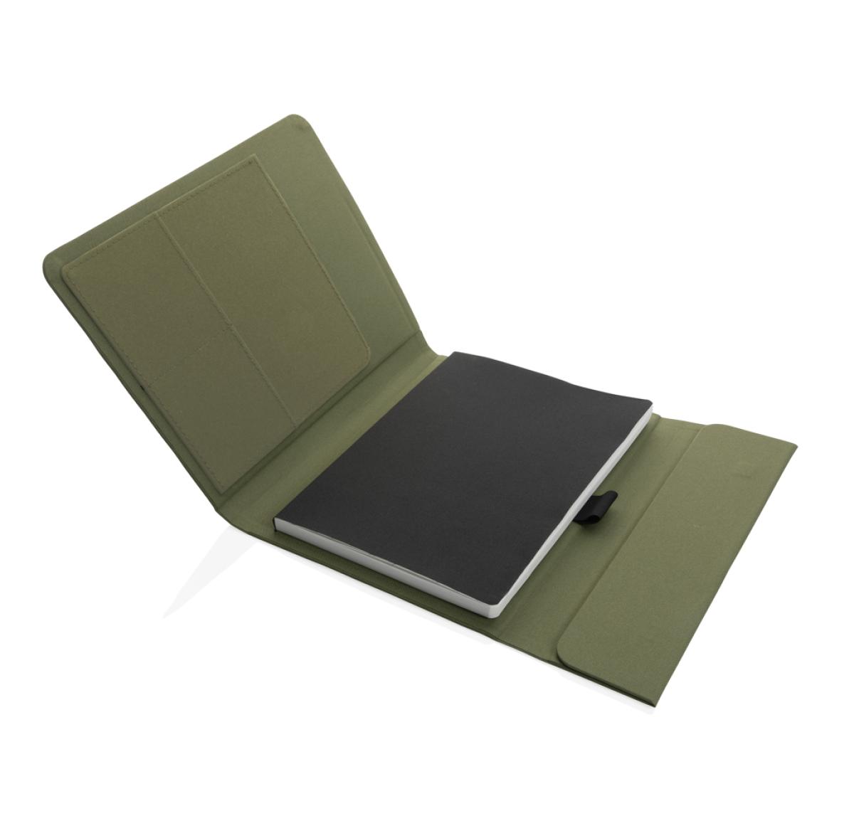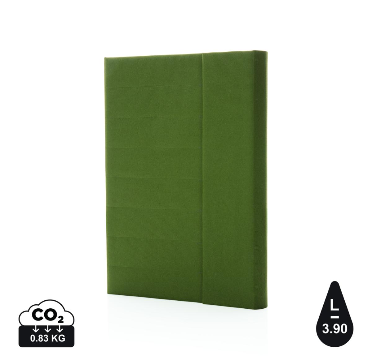 Keep all your work essentials organised in this beautiful A5 Aware?? RPET portfolio. Inside the portfolio you can find a matching notebook. The notebook contains 64 sheets/128 sheets cream coloured lined 80gm/s paper. Inside you will find 1 big sleeve pocket, 2 card slots and a pen loop. Magnetic closure. With AWARE?? tracer that validates the genuine use of recycled materials. Each portfolio saves 3.9 litres of water and has reused 6.5 0.5L PET bottles. 2% of proceeds of each Impact product sold will be donated to Water.org. PVC free.
