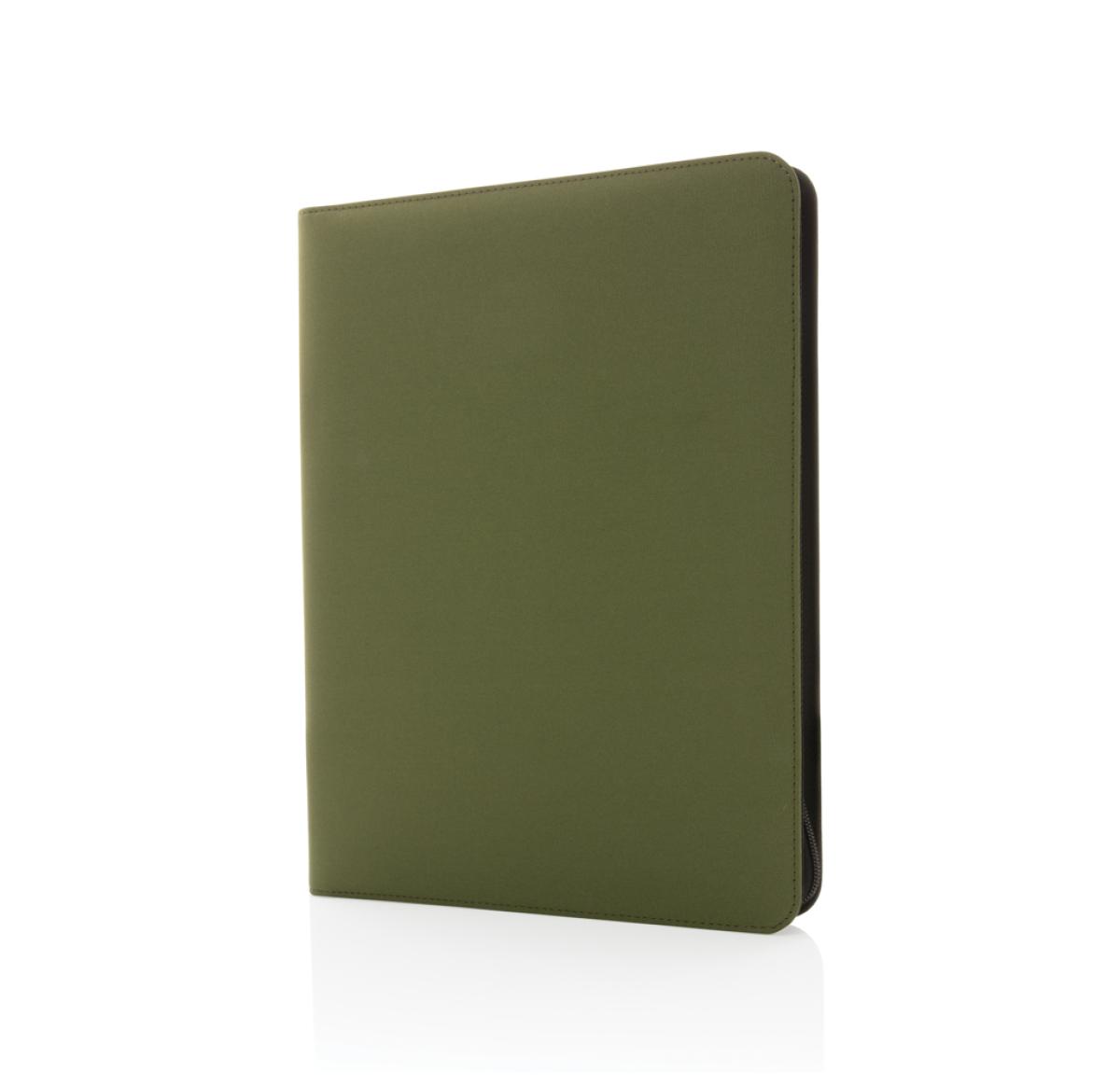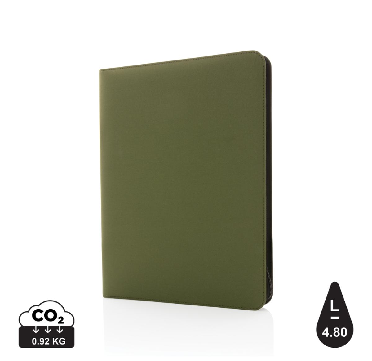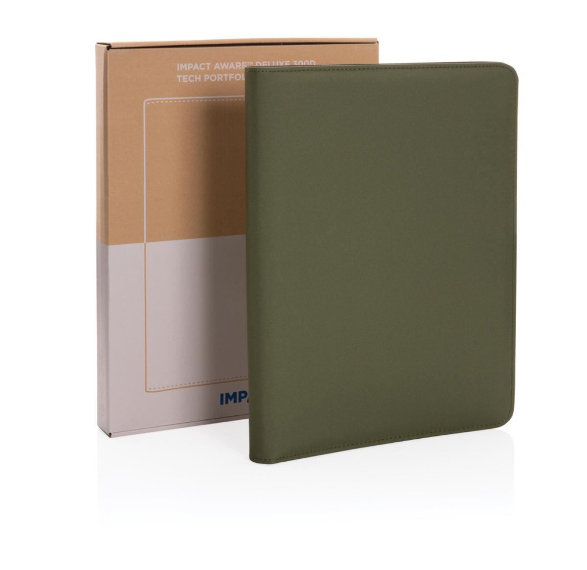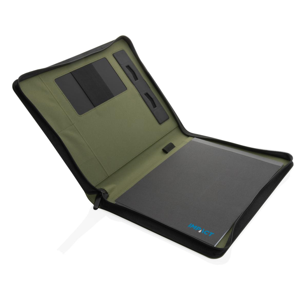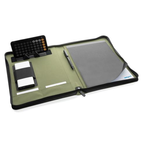 This A4 Impact AWARE?? deluxe 300D tech portfolio with zipper adds a little bit of extra sophistication to your work. Keep your important documents, cards and notes together. Inside the A4 portfolio you can find a lined 64 gm/2 recycled paper notepad containing 20 pages. Inside there??s 1 phone size pocket, a phone holder, pen loop and 2 business card slots. With AWARE?? tracer that validates the genuine use of recycled materials. Each portfolio saves 4.8 litres of water and has reused 8 0.5L PET bottles. 2% of proceeds of each Impact product sold will be donated to Water.org. PVC free.