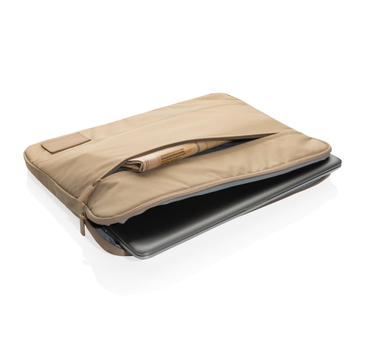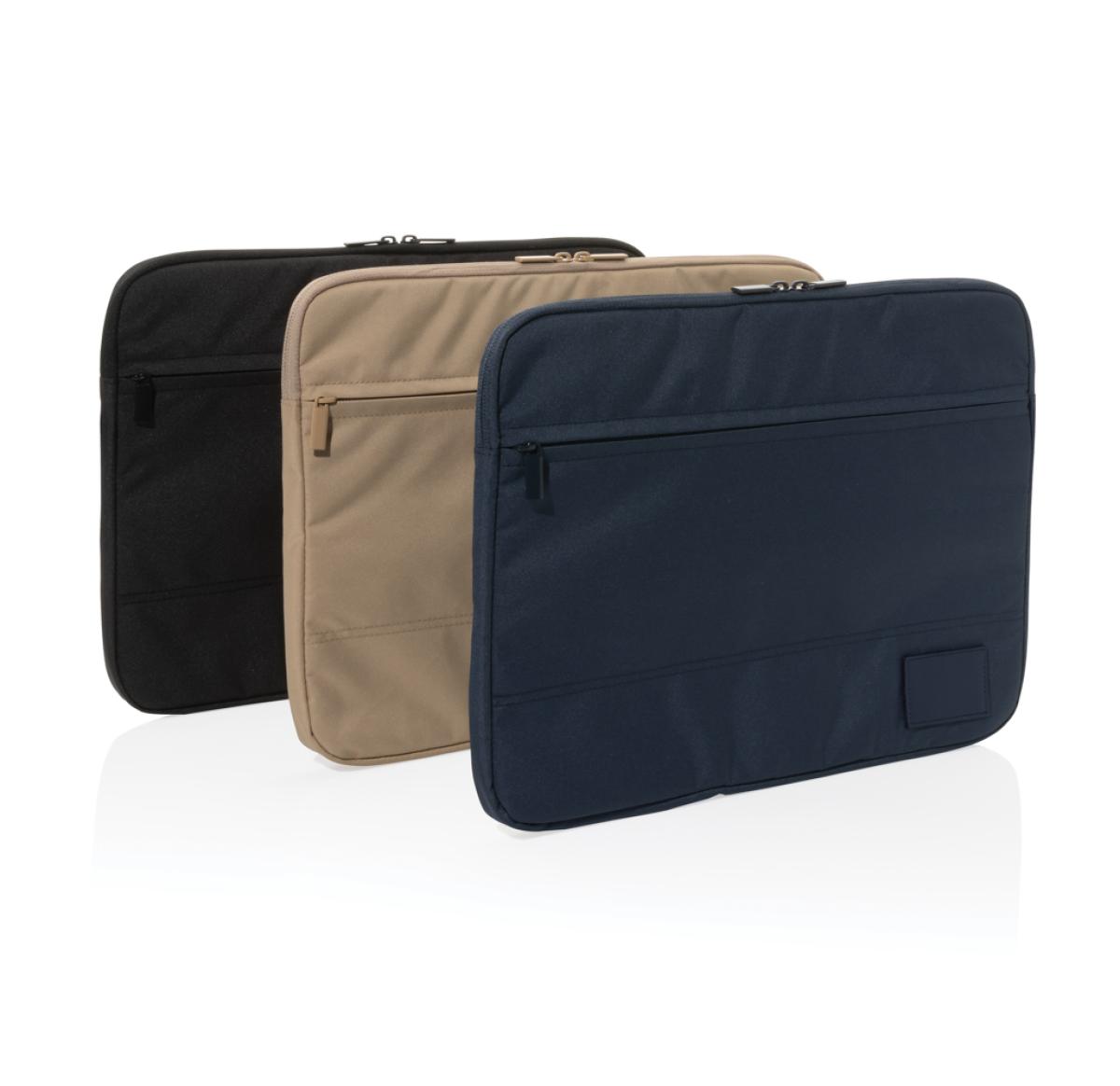 A stylish way to protect your laptop ?? a roomy front pocket and a sleek design that holds up to a 14" laptop. Made with 300D recycled polyester. With AWARE?? tracer that validates the genuine use of recycled materials. Each sleeve saves 4.7 litres of water and has reused 8 PET bottles. 2% of proceeds of each Aware?? product sold will be donated to Water.org.