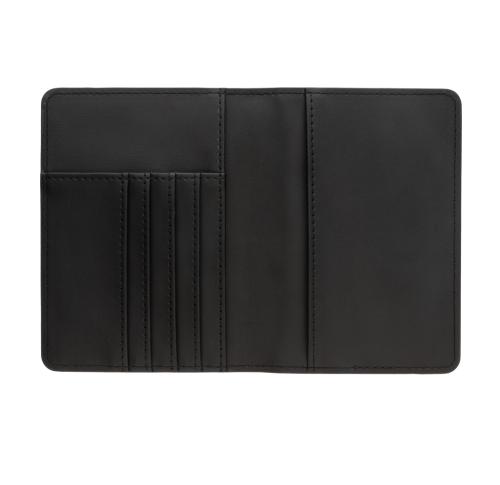 Keep your passport safe and yet easily accessible with this stylish Swiss Peak recycled PU passport holder. To make your trip easier, extra compartments help you keep your public transport card and credit cards in one place. The passport holder matches with the luggage tag. Comes in a beautiful gift box. Made with GRS (Global Recycled Standard) certified recycled materials. GRS certification ensures a completely certified supply chain of the recycled materials. Total recycled content: 70% based on total item weight. Packed in FSC??certified giftbox.