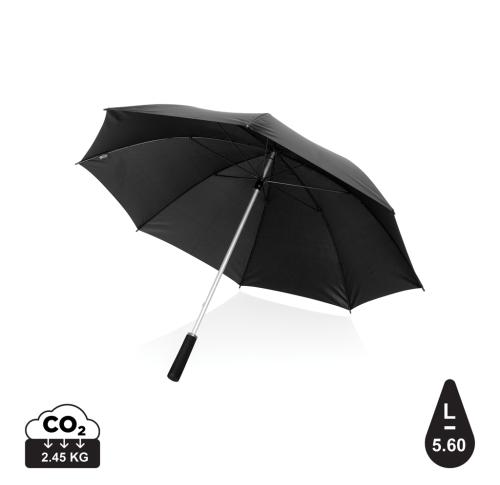 This Swiss Peak Aware?? RPET Ultra-light manual 25??umbrella offers durable weather protection in an ultralight form. Aluminium frame, fibreglass ribs with EVA handle and manual open/close. Made with 190T recycled polyester. With AWARE?? tracer that validates the genuine use of recycled materials. This umbrella canopy has saved 5.6 litres of water, is made of 9.4 PET bottles (500ml). 2% of proceeds of each Impact product sold will be donated to Water.org.