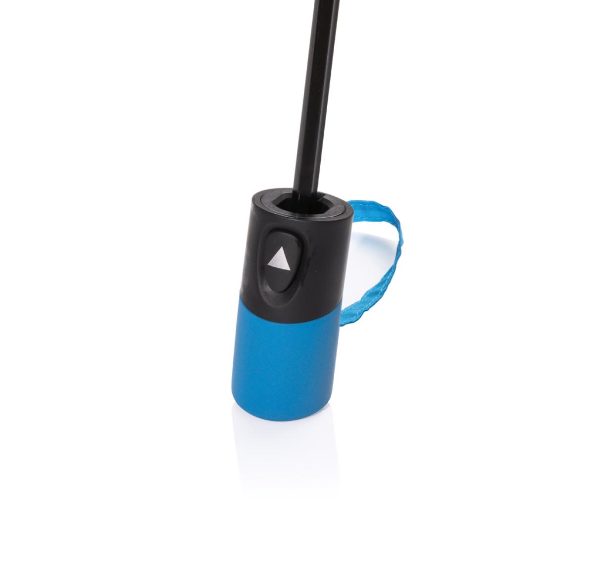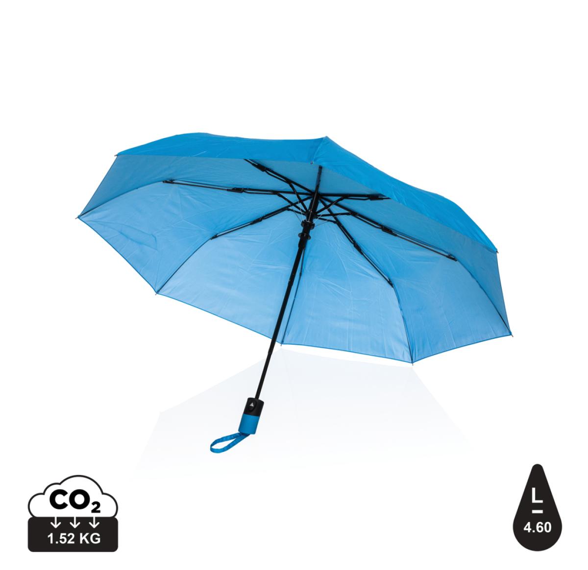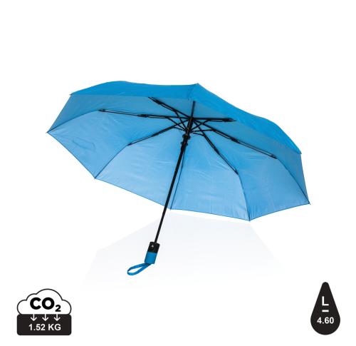 This portable 3 section auto open open mini umbrella is the perfect size to keep in your bag or car for a weather emergency. Metal frame, fibreglass ribs with ABS handle. With AWARE?? tracer that validates the genuine use of recycled materials. This umbrella canopy has saved 4.6 litres of water and is made of 7.7 PET bottles (500ml). 2% of proceeds of each Aware?? product sold will be donated to Water.org.