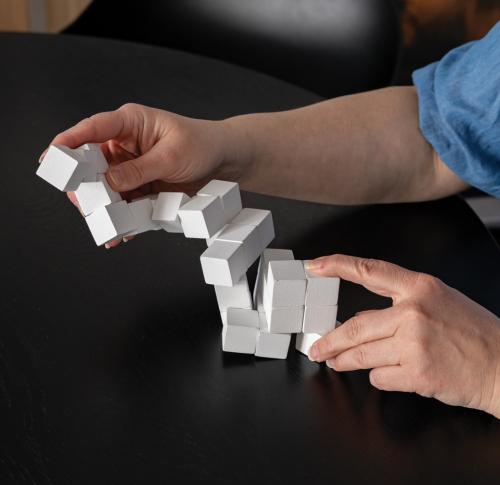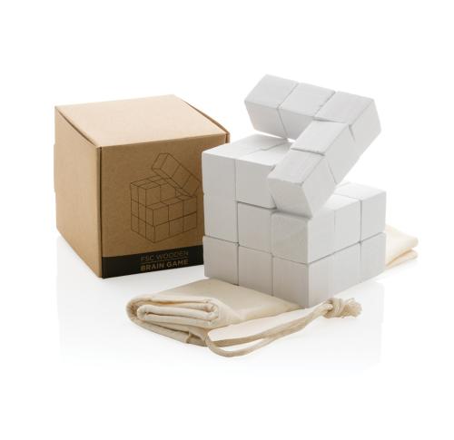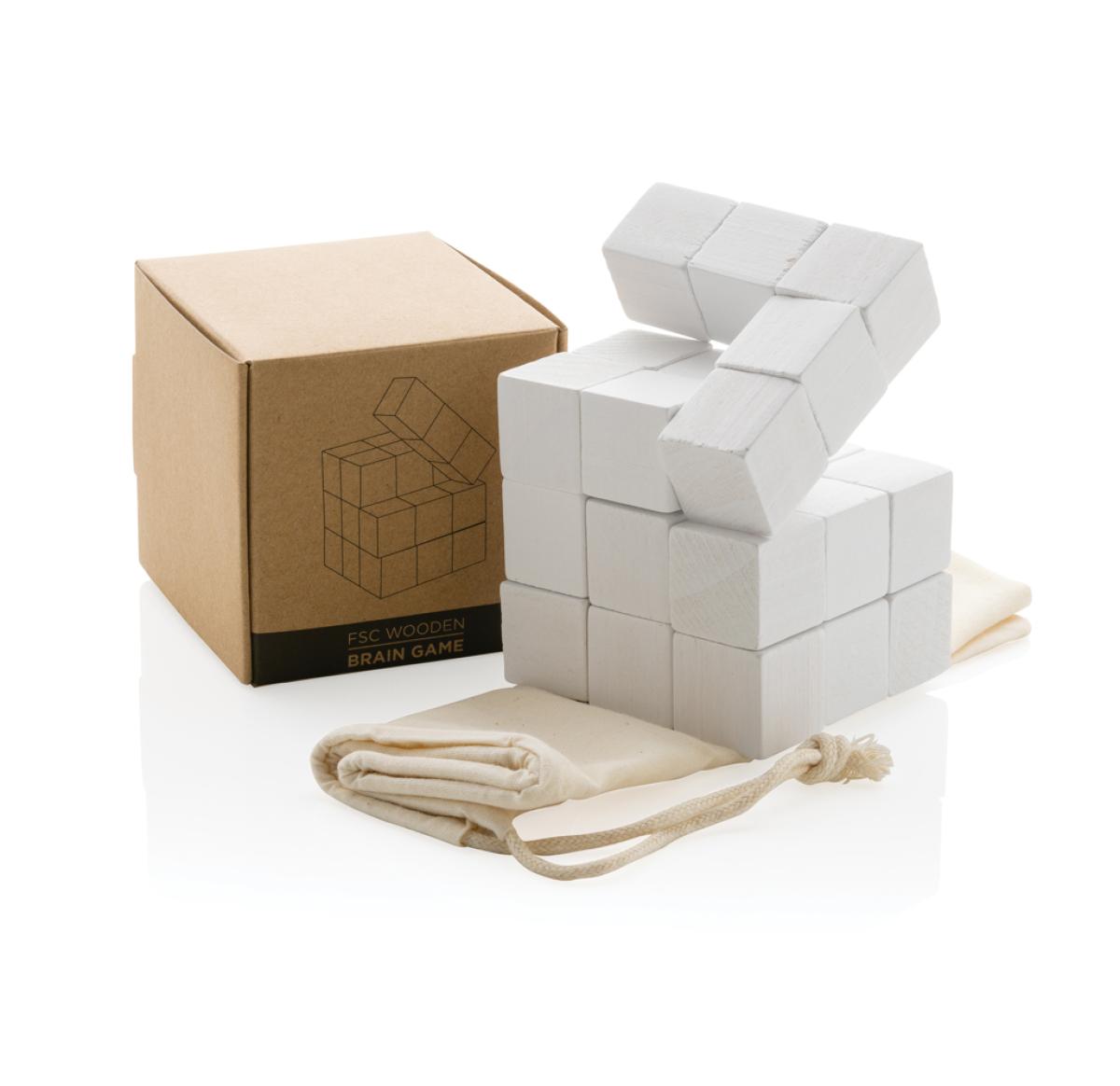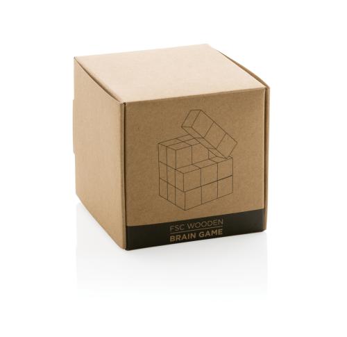 Challenge yourself with this wooden brain game! This beautiful and intriguing puzzle is made of interlocking wooden pieces that form a cube. Releasing the cube is easy, but putting it back together is a different story! The puzzle a joy to play with and ensures some brain teasing fun. The brain teaser comes in a canvas pouch for easy storage. Made with FSC??certified wood. Comes in FSC??certified kraft gift packaging.