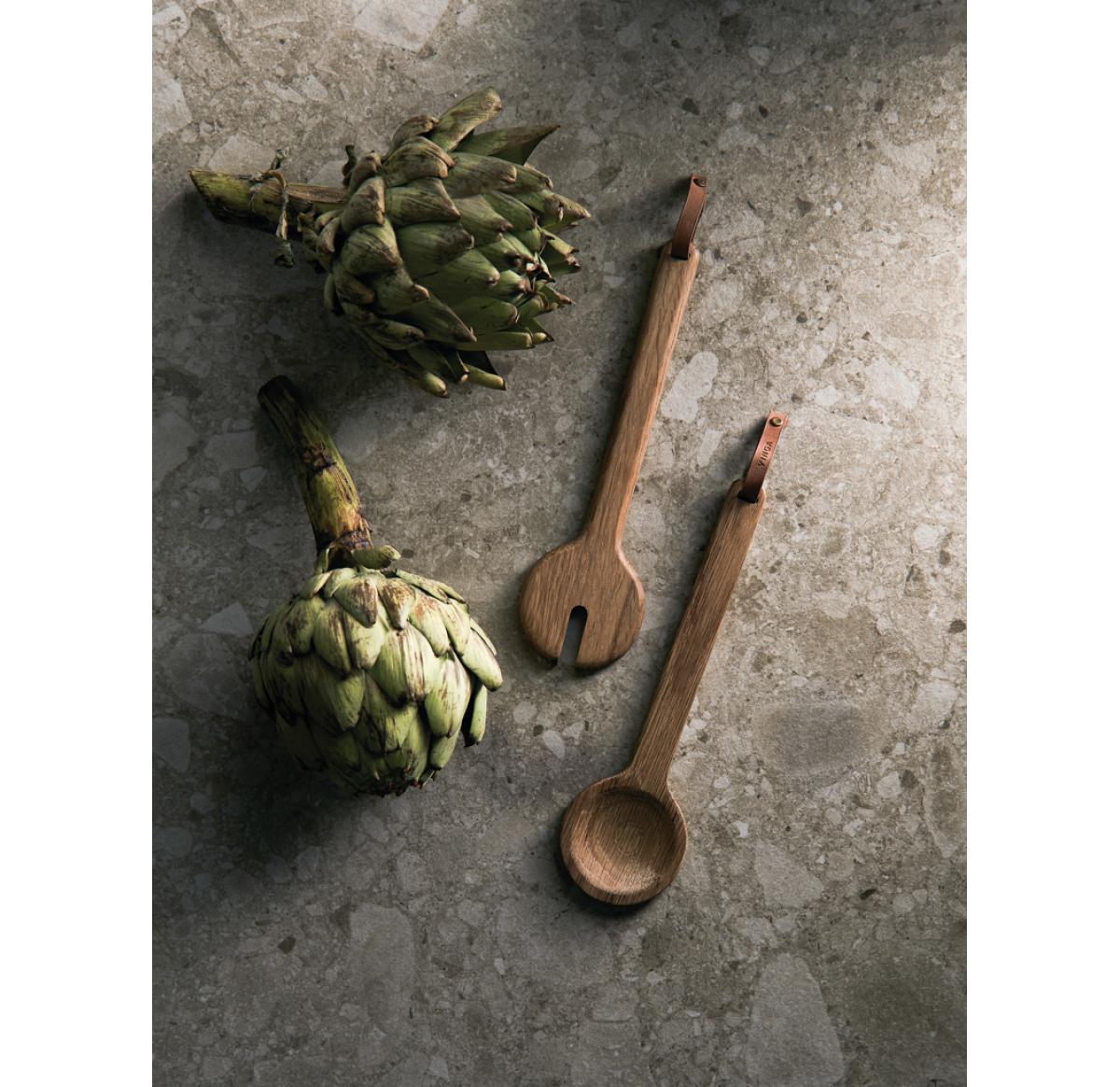 Exclusive oak serving utensils with a fine PU detail. The beautiful wood brings a lively and warm touch to the simple and stylish design. Perfect for both everyday and parties.
