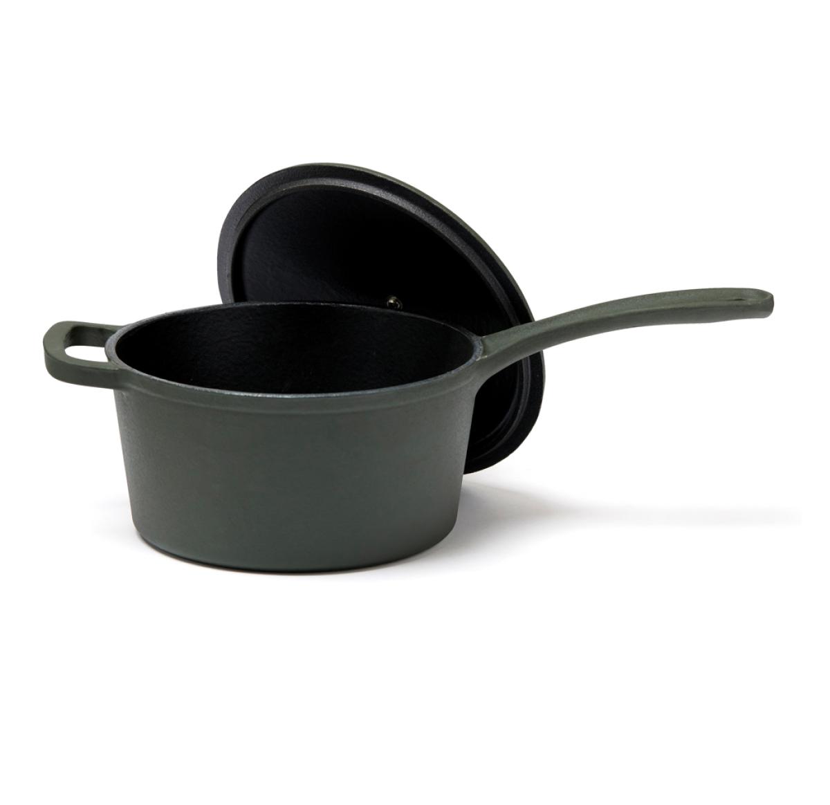 Introducing the saucepan from the Monte series, a versatile addition to your kitchen that's perfect for preparing sauces, soups and even baking. Its excellent heat capacity, courtesy of the cast iron material, ensures an even distribution of heat. The saucepan's thick base is designed to prevent contents from burning easily. Its black enamel interior features larger pores and a slightly rougher surface that gradually fills with oil over time, producing a non-stick patina akin to raw cast iron. This saucepan is compatible with all types of hobs, including induction hobs.