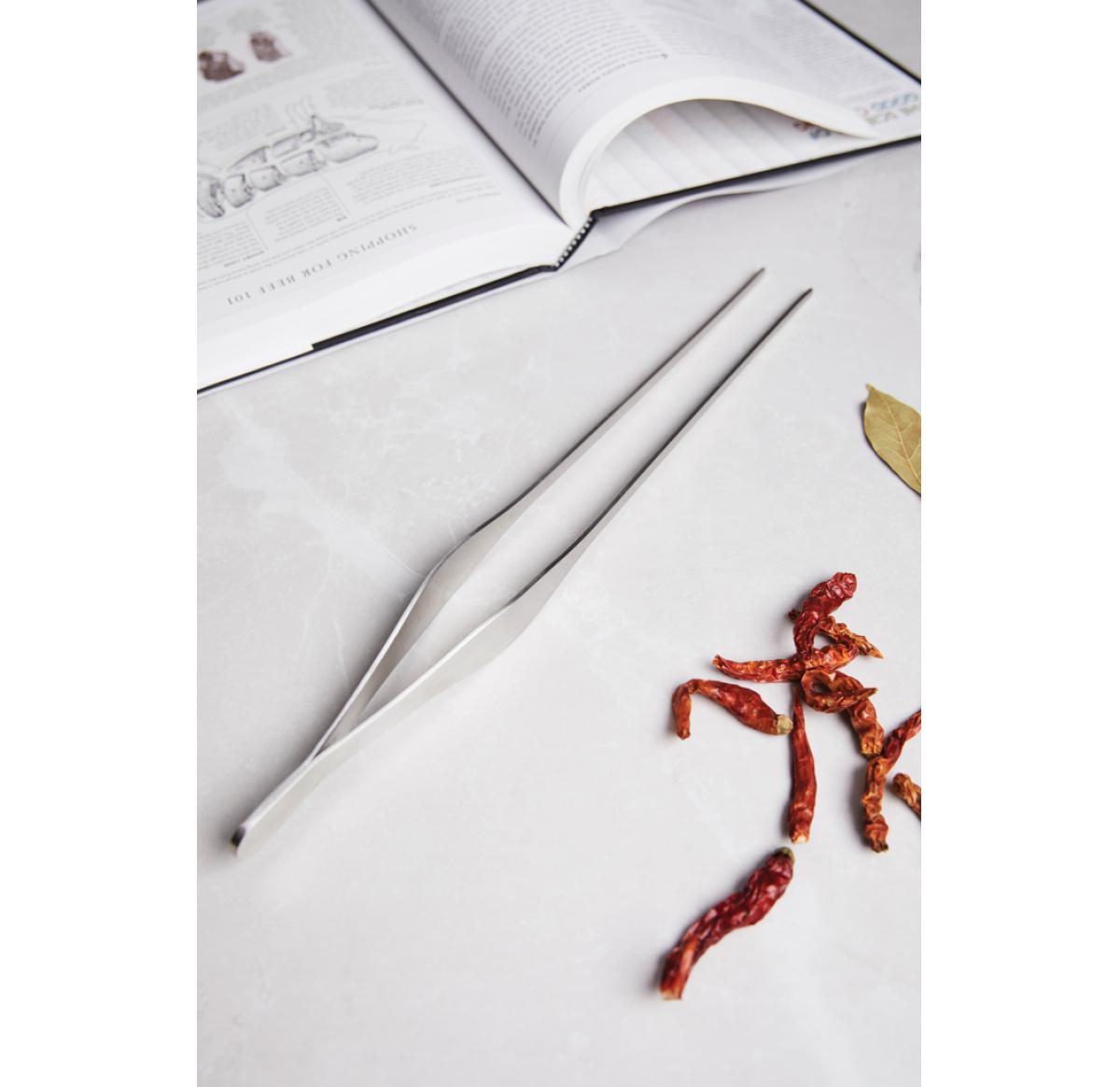 Cooking tong made of stainless steel, easy to use for different sizes of food. The ribbed inside of the tweezer top increases the friction which improves your grip.