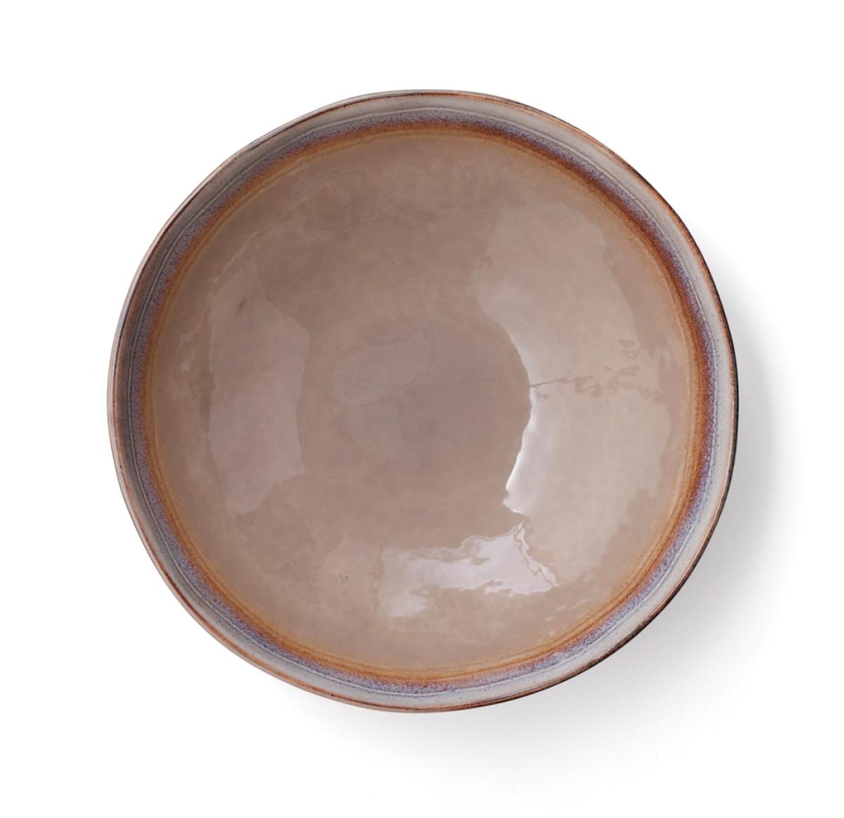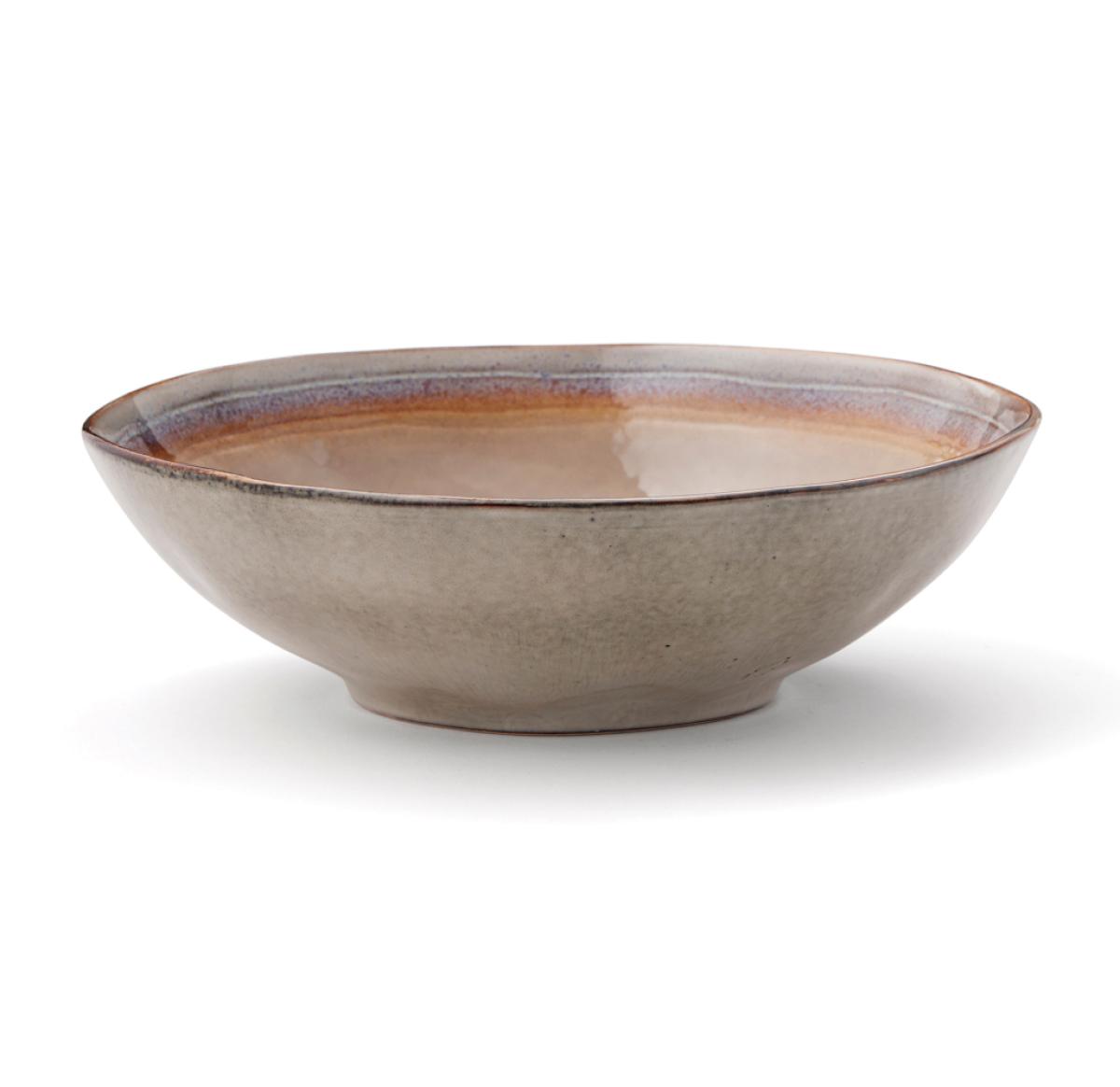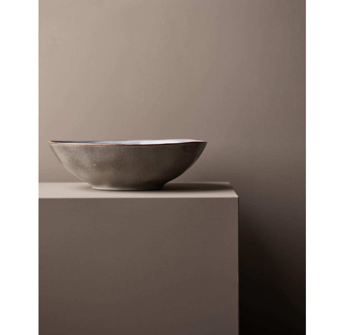 Lovely serving bowl made of stoneware with higher edges, making it elegantly uneven. Perfect for serving a delicious noodle salad or a pasta dish. Each item is handmade and glazed three times in order to obtain the right kind of finish. It makes each item completely unique. Dishwasher and microwave safe.