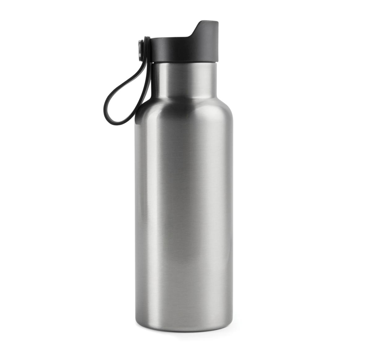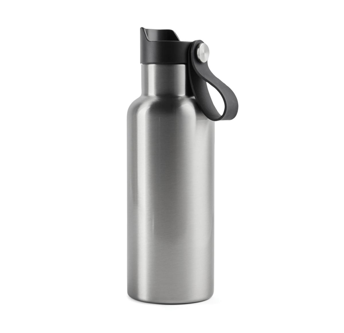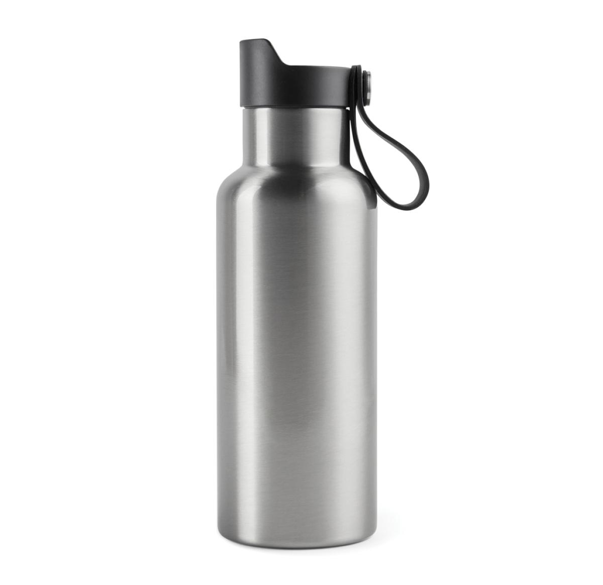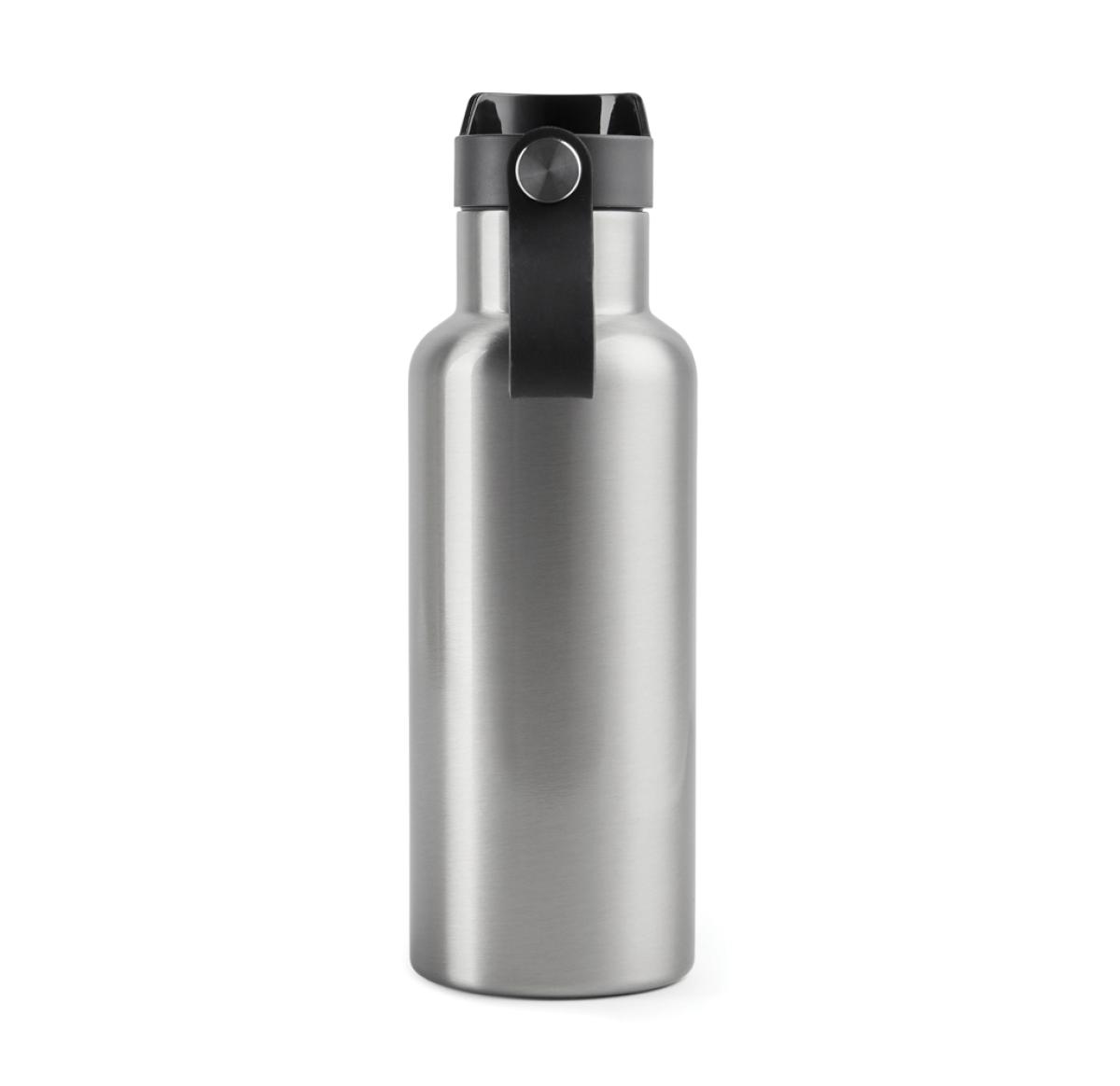 Practical and stylish water bottle with a tough, double wall. Vacuum sealed to keep drinks hot or cold for up to 6 hours. Enjoy your favourite cold drink while you're out and about or bring a warming cup of tea or coffee on your morning commute. Push-mug function. 500ml.