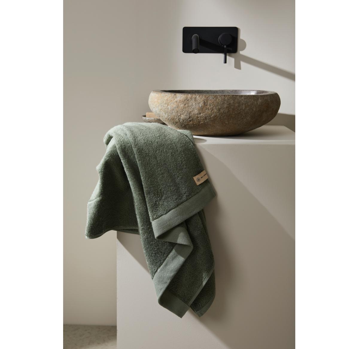 A towel with 68% cotton and 32% Tencel. Tencel is a natural fibre obtained from certified forests. The process is as energy and chemical efficient as is currently possible. This blend produces a cool, soft and durable fabric with a solid feel, and, on account of the Tencel blend, it has excellent absorbency. Produced in a colour scheme of earth tones in a variety of sizes.