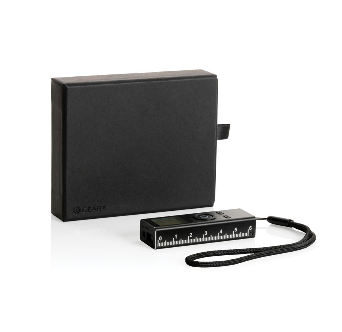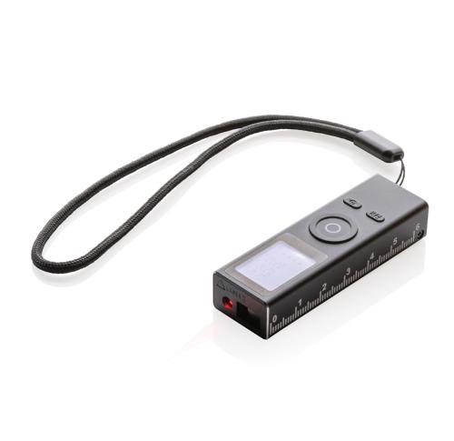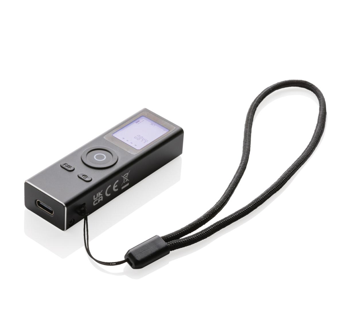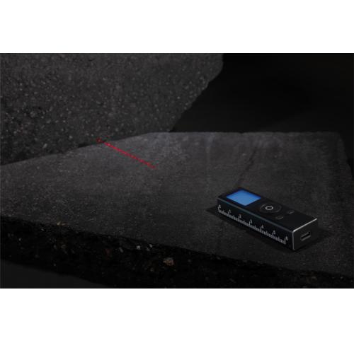 Functionality, materials and design all come together in this re-chargeable 30 metre laser measure made with RCS certified recycled aluminum. Total recycled content: 22% based on total item weight. RCS certification ensures a completely certified supply chain of the recycled materials. The laser measure uses a re-chargeable A-grade 250 mah battery so no need to replace the batteries. Simply re-charge via your USB socket and the included RCS certified recycled type C cable. Class 2 laser. Response time 0.1 second. Measuring system can be adjusted to metres/inches/feet. Laser colour: red. With sound reminder when measuring is finalised. Type-C in, 5V/1A. 4 modes: distance, square area, volume and pythagoras (corners)