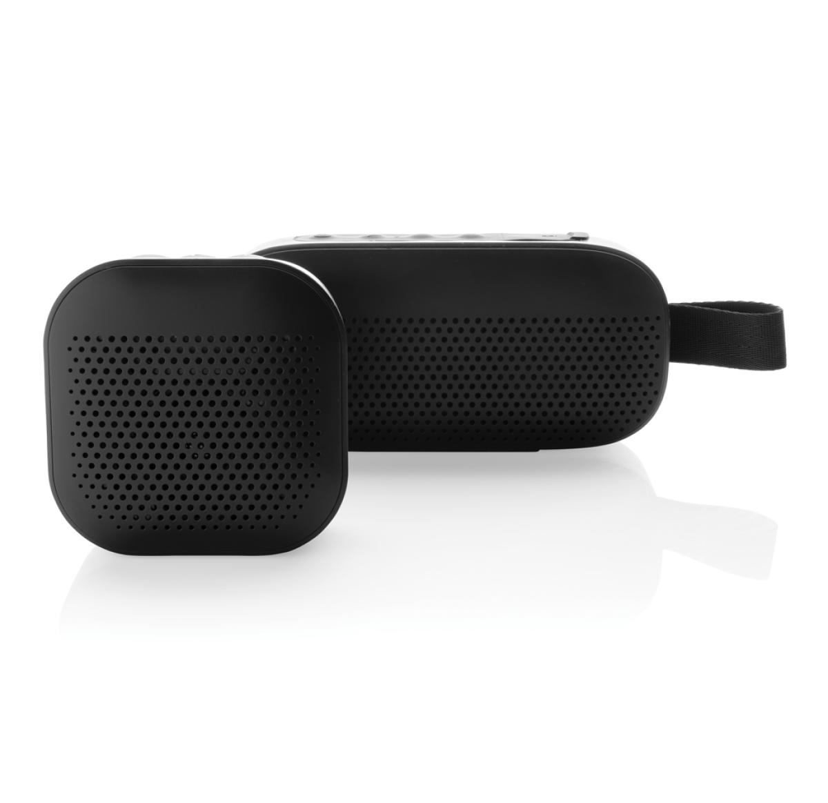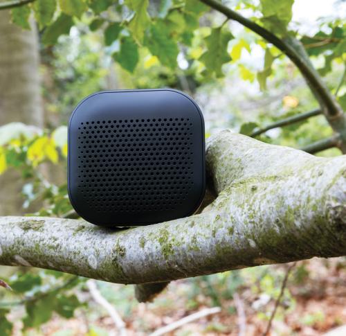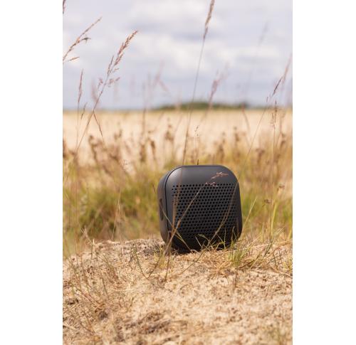 3W wireless speaker made with RCS (Recycled Claim Standard) certified recycled ABS. Total recycled content: 41% based on total item weight. RCS certification ensures a completely certified supply chain of the recycled materials. The speaker is equipped with a 400 mAh battery to ensure up to 3.5 hours of playing time and BT5.3 for smooth connection with clear sound. Connection range up to 10 metres. With mic to answer calls. Packed in FSC® mix box. Including RCS certified recycled TPE charging cable. Item and accessories 100% PVC free. IPX 4 waterproof.