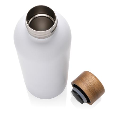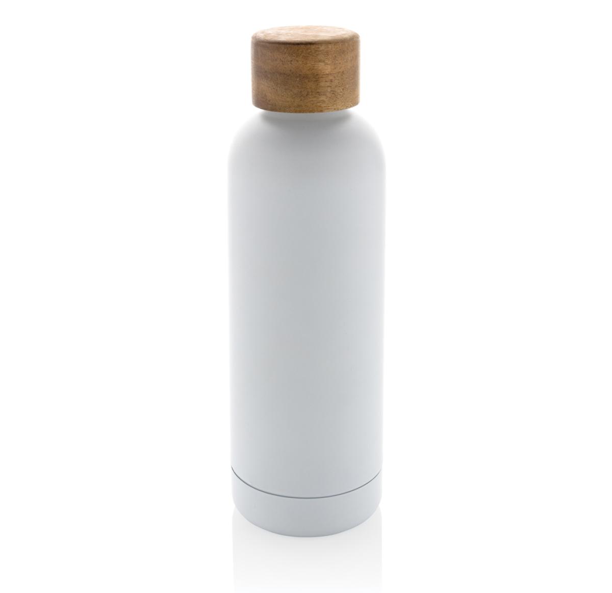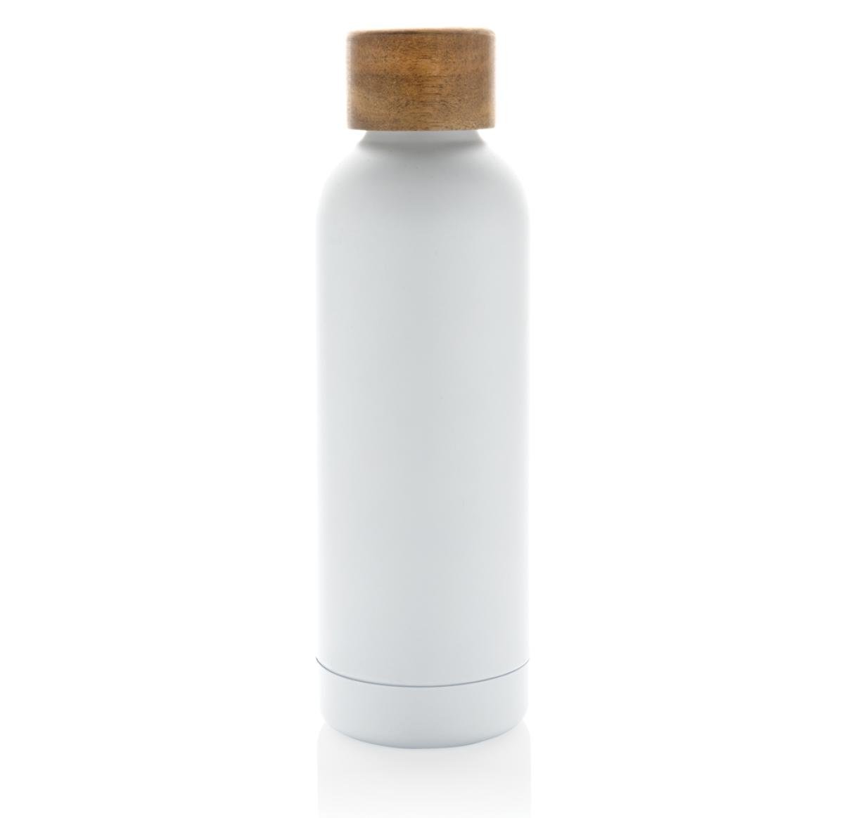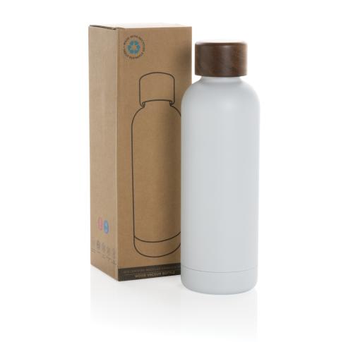 Branded Wood RCS Certified Recycled Stainless Steel Vacuum Bottle White