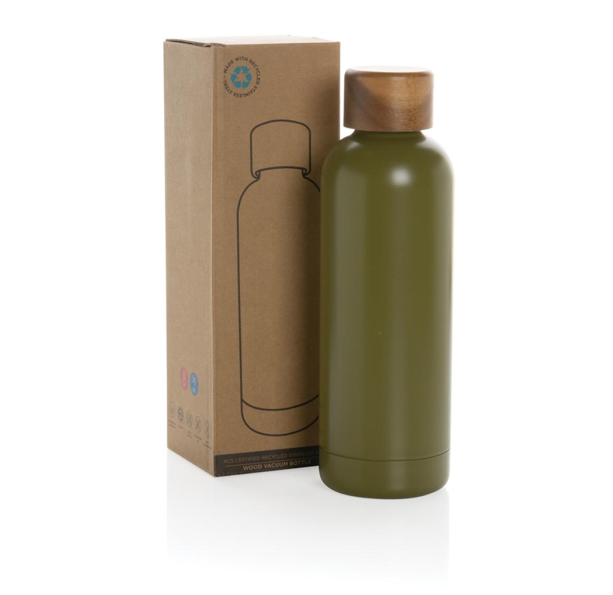 Wood RCS Certified Recycled Stainless Steel Vacuum Bottle Green