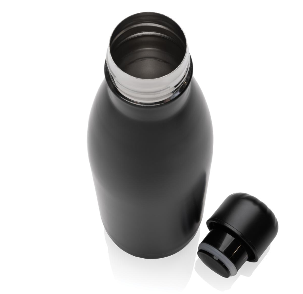 Elevate your daily water intake with this single wall stainless steel bottle. The bottle is suitable for cold drinks only. With a base that fits in most cup holders, this sleek looking water bottle will keep you hydrated on the go wherever you are. Made with RCS (Recycled Claim Standard) certified recycled materials. RCS certification ensures a completely certified supply chain of the recycled materials. Total recycled content: 84% based on total item weight. BPA free. Capacity 500ml. Including FSC®-certified kraft packaging.