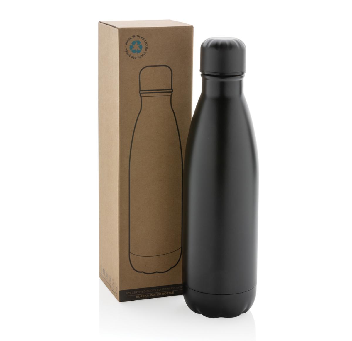 Promotional Eureka RCS Certified Re-steel Single Wall Water Bottle Black