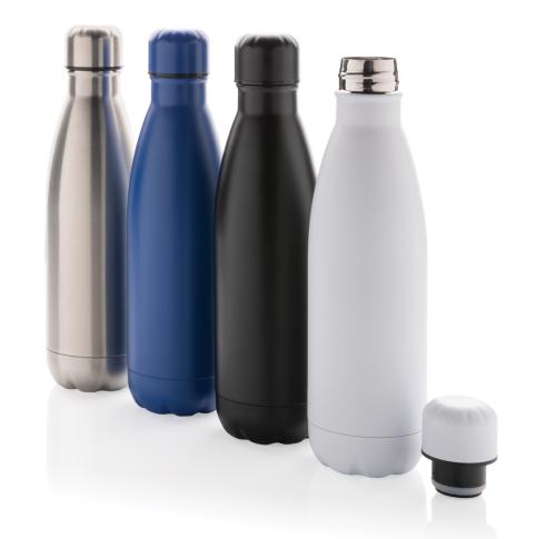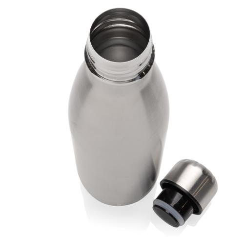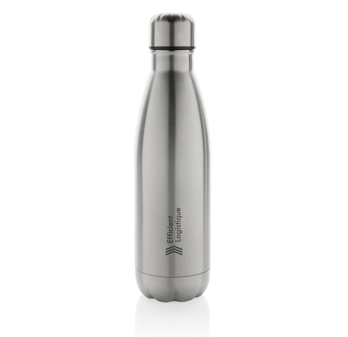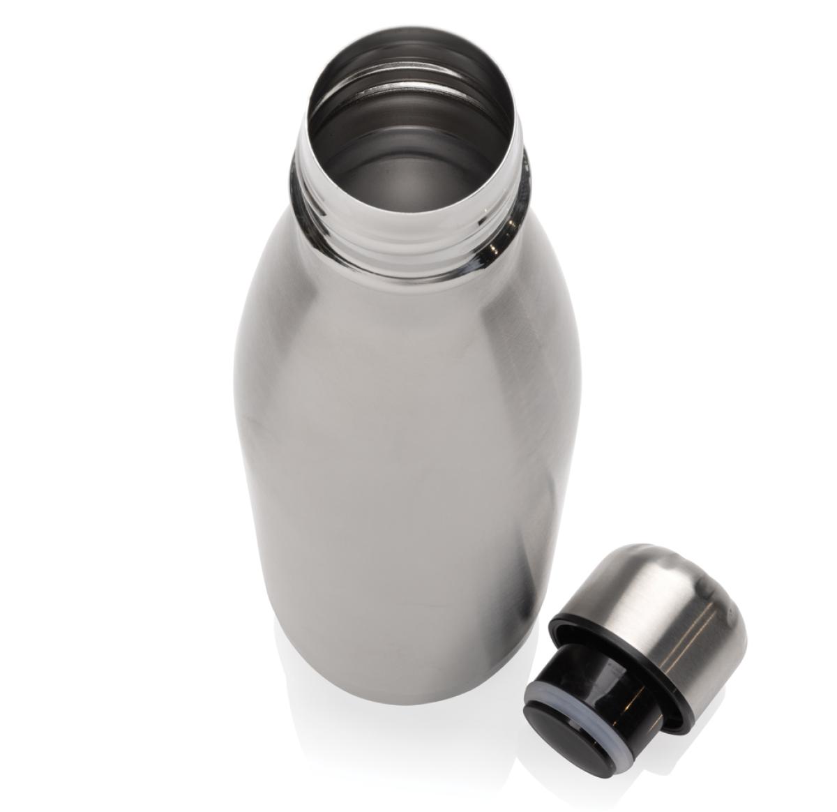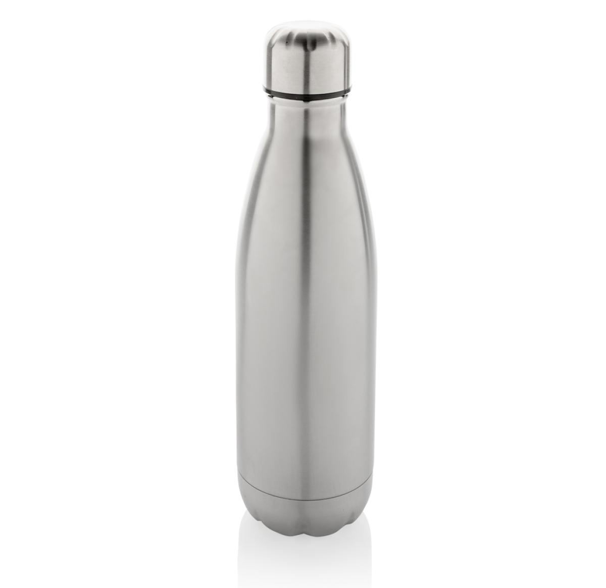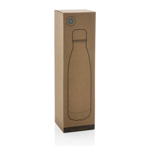 Elevate your daily water intake with this single wall stainless steel bottle. The bottle is suitable for cold drinks only. With a base that fits in most cup holders, this sleek looking water bottle will keep you hydrated on the go wherever you are. Made with RCS (Recycled Claim Standard) certified recycled materials. RCS certification ensures a completely certified supply chain of the recycled materials. Total recycled content: 84% based on total item weight. BPA free. Capacity 500ml. Including FSC®-certified kraft packaging.