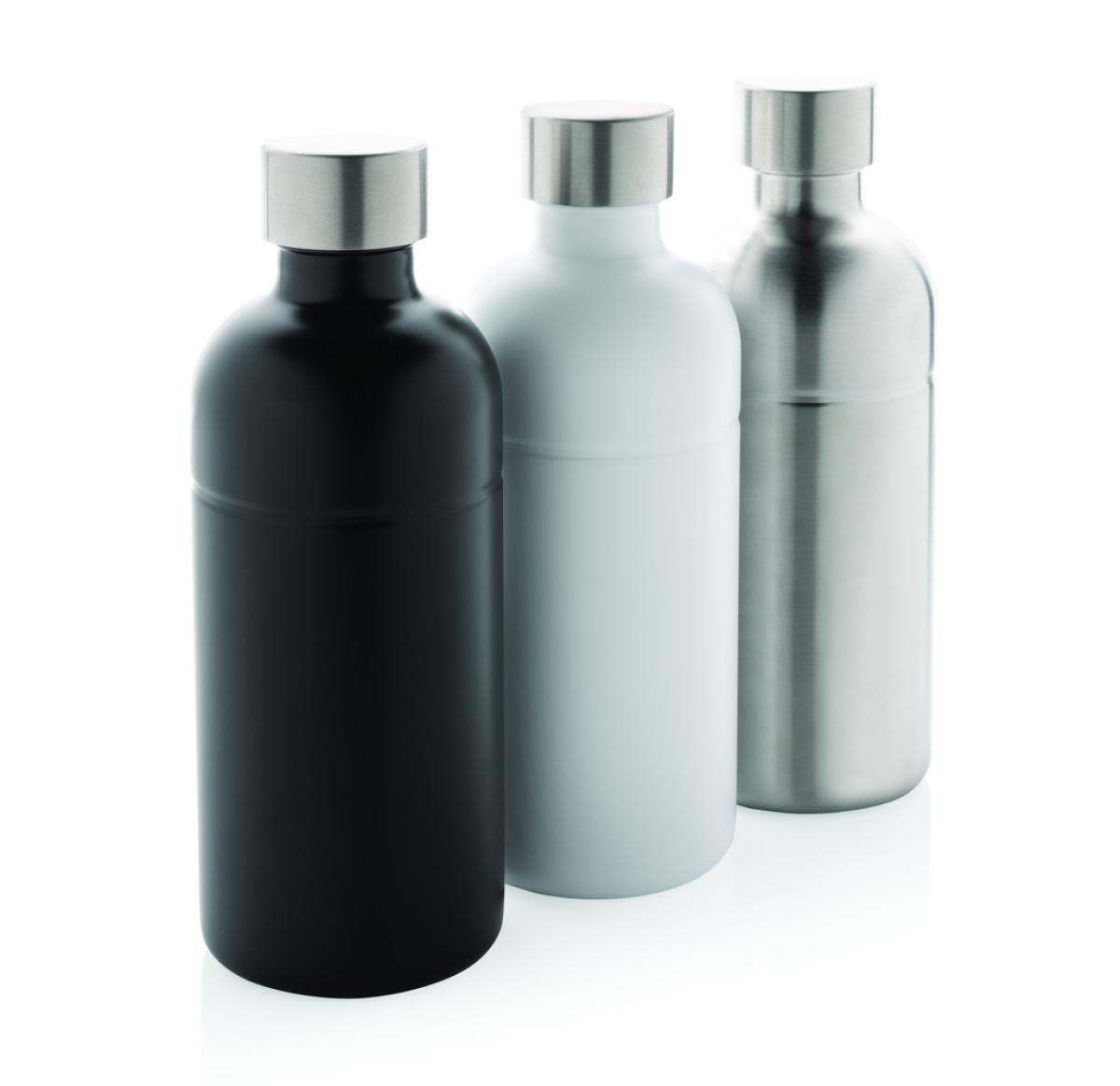This Soda bottle is made from recycled stainless steel and is perfect for everyday carrying and hydration. The unique design even enables you to use it for carbonated drinks and it is guaranteed leakproof. Made with RCS (Recycled Claim Standard) certified recycled materials. RCS certification ensures a completely certified supply chain of the recycled materials. Total recycled content: 85% based on total item weight. BPA free. Capacity 800ml. Including FSC®-certified kraft packaging. Registered Design®.