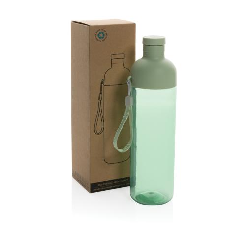 Eliminate the use of plastic bottles with this Recycled Impact leak proof water bottle. With its fresh design and transparent body, the bottle is not only easy to use but also beautiful to look at. The split body design makes it easy to clean and is great if you want to add ice cubes into your bottle. In the body is a strap attached for easy carrying. 2% of proceeds of each sold product of the Impact Collection will be donated to Water.org. Hand wash only. This product is for cold drinks only. Total recycled content: 96% based on total item weight. BPA free. Capacity 600ml. Including FSC®-certified kraft gift packaging.