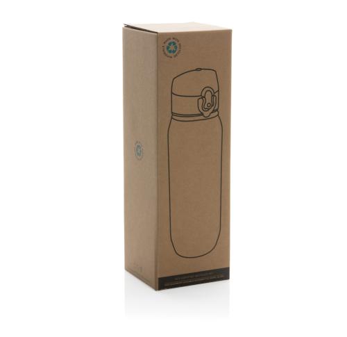 This RCS RPET water bottle is leakproof and features a lockable and one hand operation lid. It also features a handle for easy carrying. The body of the bottle is made from 100% RCS certified RPET. RCS certification ensures a completely certified supply chain of the recycled materials. Hand wash only. This product is for cold drinks only. Total recycled content: 73% based on total item weight. BPA free. Capacity 800ml. Including FSC®-certified kraft gift packaging.