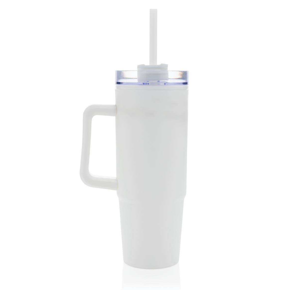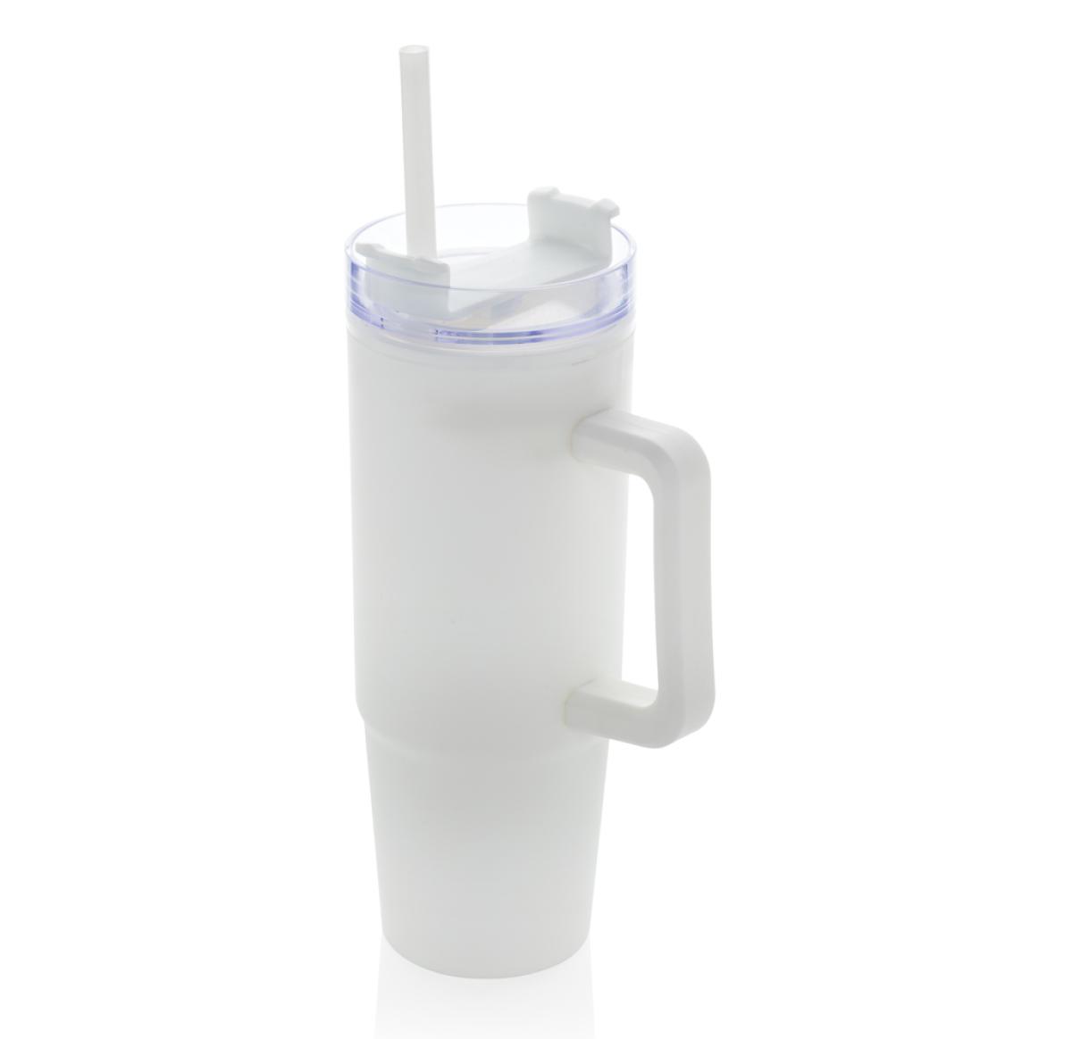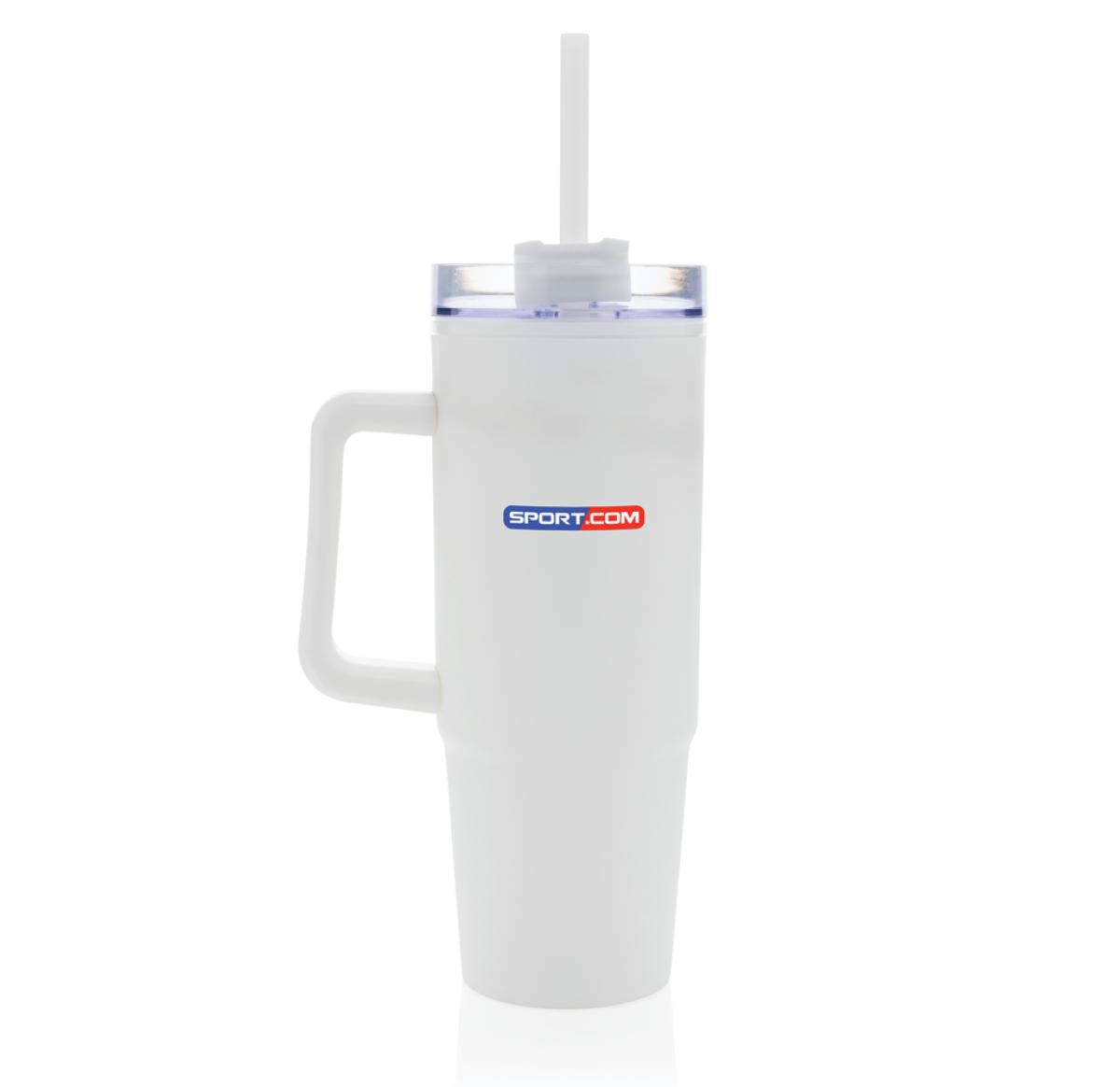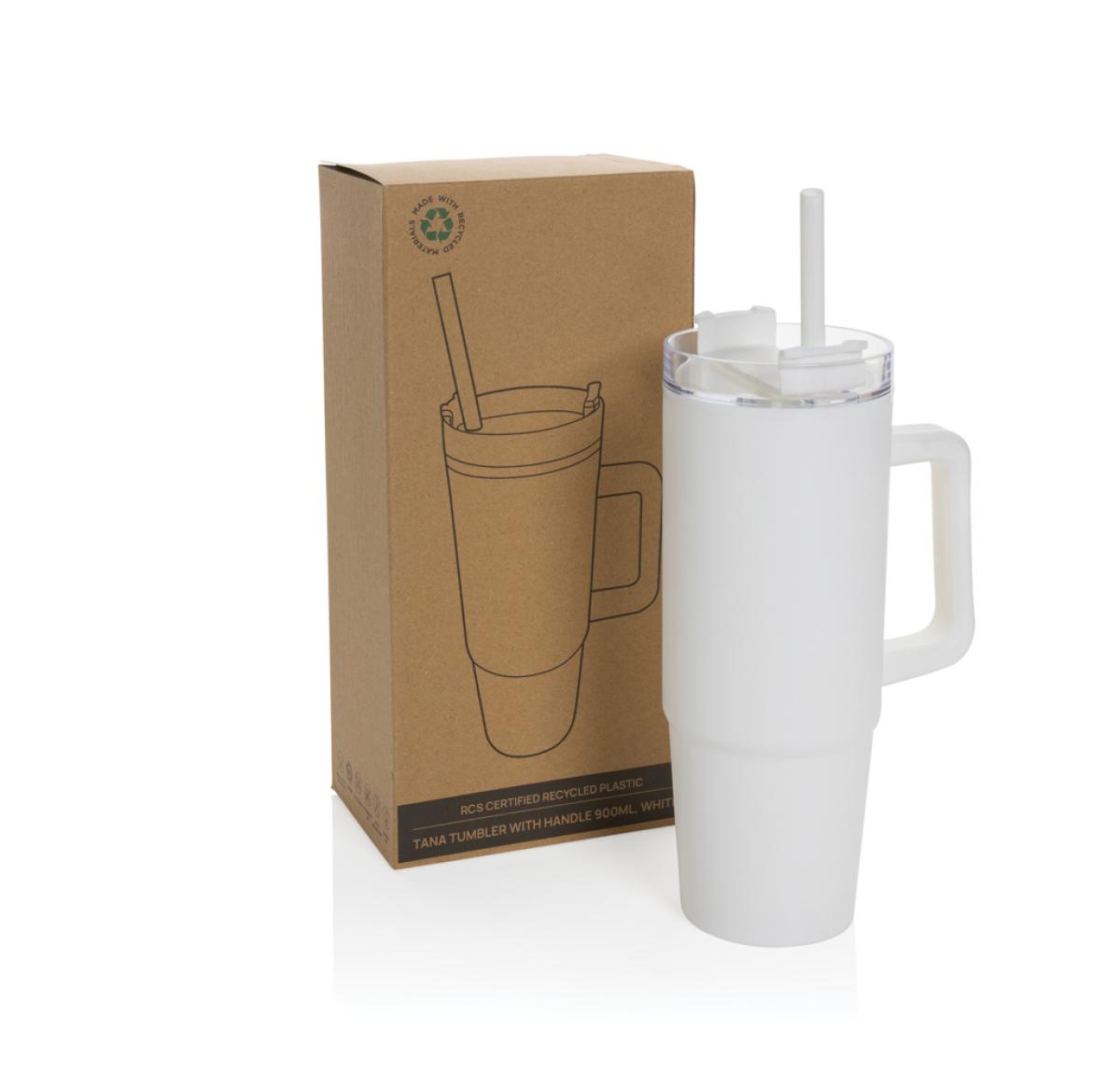 Promotional Stanley Cups Inspired Tana RCS Recycled Plastic Tumbler With Handle 900ml White