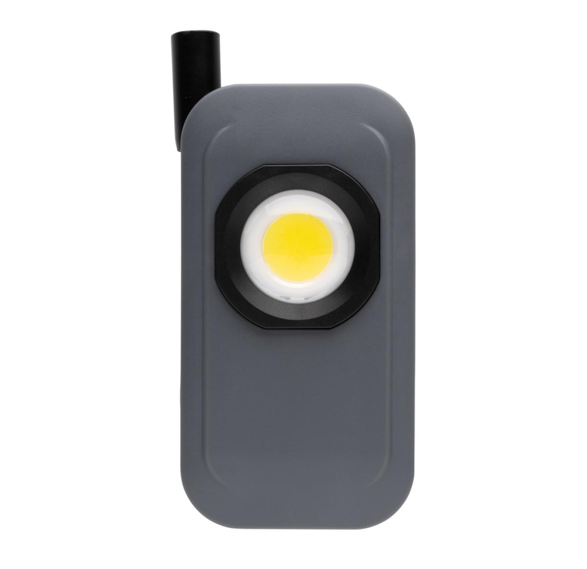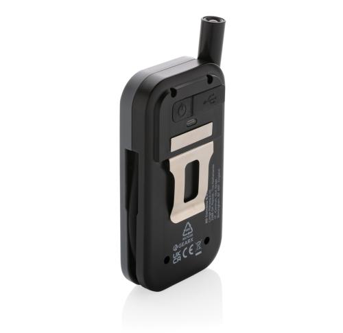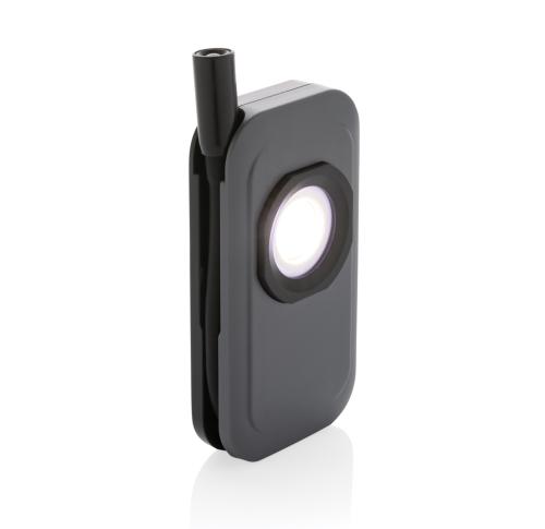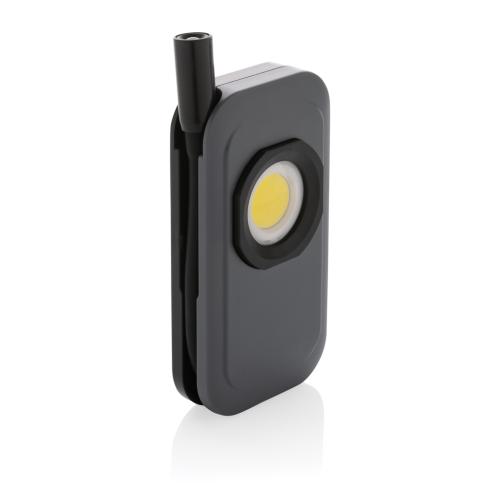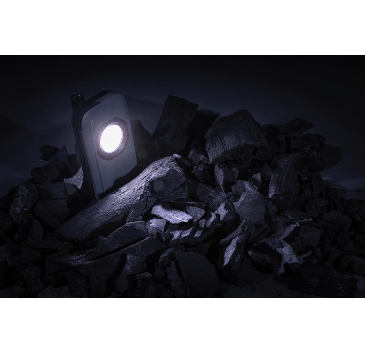 RCS certified recycled ABS plastic. Total recycled content: 36% based total item weight. RCS certification ensures a completely certified supply chain of the recycled materials. The work light uses a re-chargeable A-grade 1000 mah lithium battery so no need to replace the batteries. Simply re-charge via your USB socket. The work light comes with 260 lumen COB light and extendable 80 lumen LED light. With 3 modes: LED, COB and COB 50%. With magnet on the back. With type C port for re-charging. Operating time on one charge: 3 hours.
