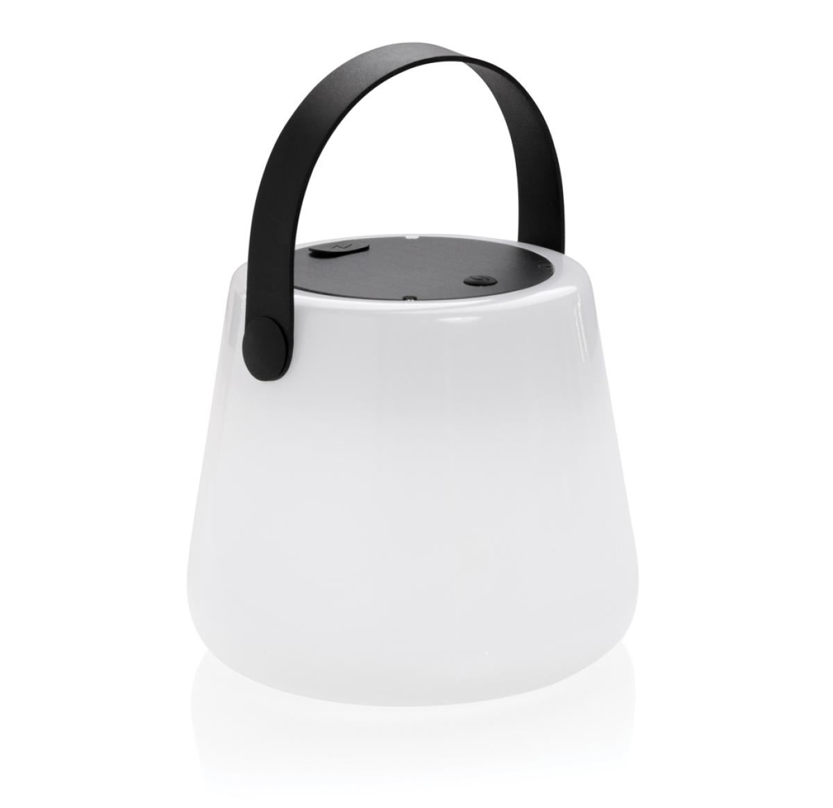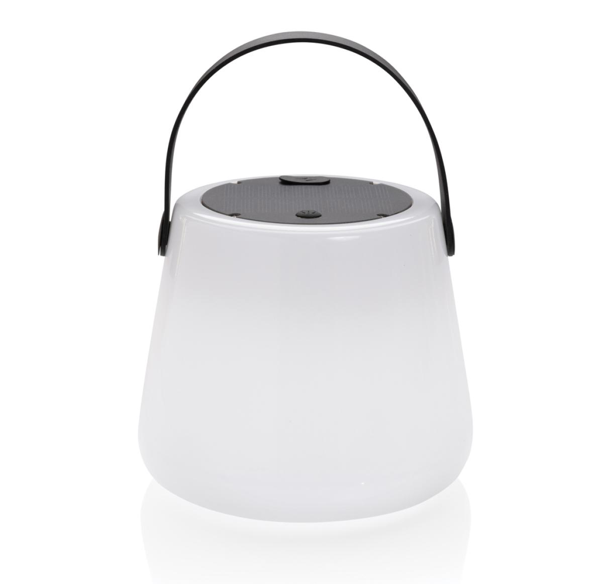 LED solar table light made with RCS certified recycled ABS. Total recycled content: 71% based on total item weight. RCS certification ensures a completely certified supply chain of the recycled materials. The torch uses a re-chargeable A-grade 1200 mah lithium battery so no need to replace the batteries. Simply re-charge via your USB socket and the integrated type C port. Including 80cm charging cable. Charging time by cable: 3 hours. 10 hours in bright sunlight will provide up to 3-4 hours of working time. Working time when fully charged: 20 hours. IPX 4 waterproof.