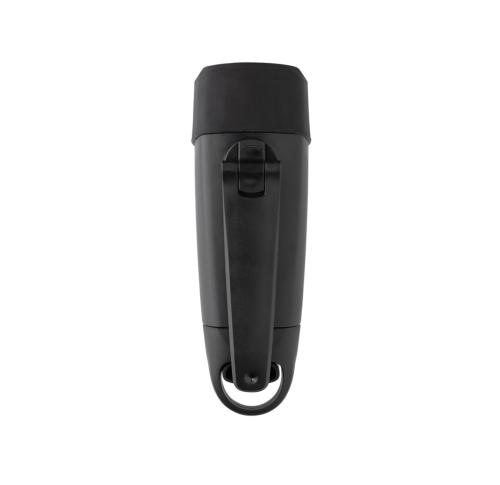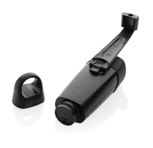 Extra bright torch with crank made with RCS certified recycled ABS plastic. Total recycled content: 30% based total item weight. RCS certification ensures a completely certified supply chain of the recycled materials. The torch uses a re-chargeable A-grade 620 mah lithium battery so no need to replace the batteries. Simply re-charge via your USB socket. 120 lumen LED light. With type C port for re-charging. Operating time on one charge: 2 hours. Crank can be used to add energy in case of emergency.