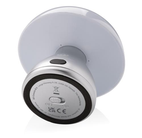 Trendy re-chargeable and portable table lamp that will look good both on your desk or in your living room. Made with RCS certified recycled ABS and RCS certified recycled aluminum. Total recycled content: 42% based on total item weight. RCS certification ensures a completely certified supply chain of the recycled materials. The table lamp will operate up 18 hours on one single charge and can be re-charged in 2 hours. With two modes (warm light and white light) that can be adjusted by touching the top of the lamp. Rechargeable via USB-C. Packed in FSC® mix packaging. IPX 4 waterproof.