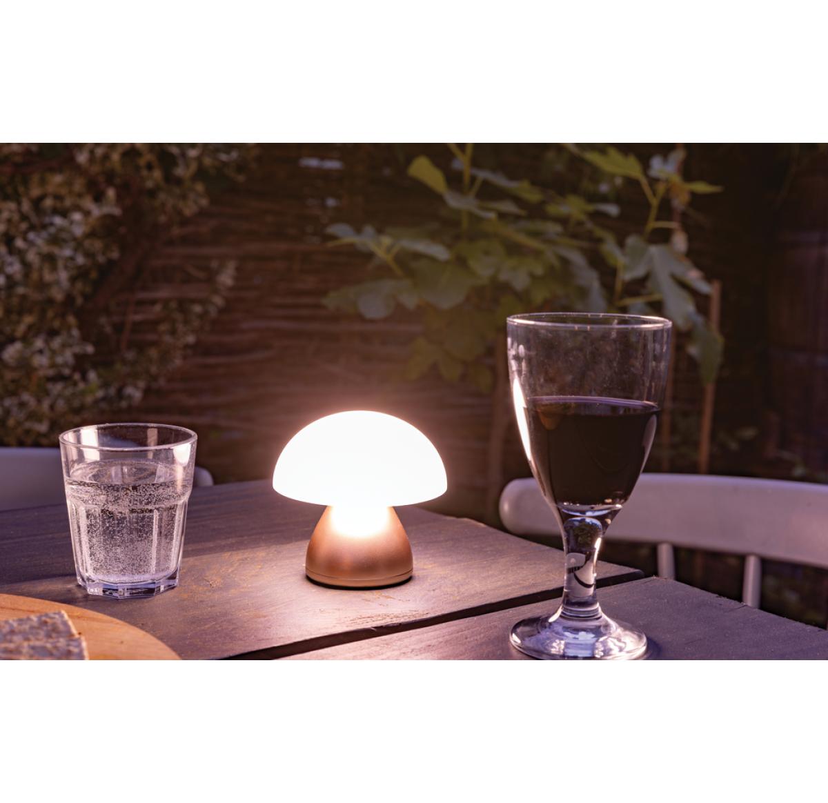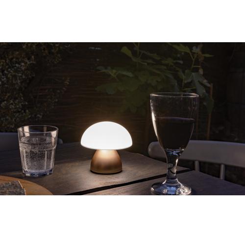 Trendy re-chargeable and portable table lamp that will look good both on your desk or in your living room. Made with RCS certified recycled ABS and RCS certified recycled aluminum. Total recycled content: 42% based on total item weight. RCS certification ensures a completely certified supply chain of the recycled materials. The table lamp will operate up 18 hours on one single charge and can be re-charged in 2 hours. With two modes (warm light and white light) that can be adjusted by touching the top of the lamp. Rechargeable via USB-C. Packed in FSC® mix packaging. IPX 4 waterproof.