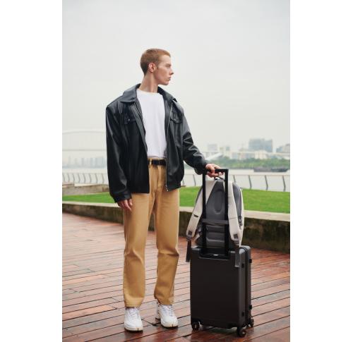 For university, school, work, or your next trip, the Bobby Soft Backpack is ready! The iconic Bobby anti-theft design with hidden RFID-protected pockets, no front access, and hidden zippers is now complemented with a twist-lock zipper puller. In the main compartment, you can easily organize your gear with a padded 15.6" laptop compartment, notebook pocket, smart pockets, and a keychain clip. The top of the backpack is expandable giving additional space. This backpack is also equipped with an integrated USB charging port and water-repellent material. Made from R-pet fabric with the AWARE™ tracer. With AWARE™, the use of genuine recycled fabric is guaranteed. 46% recycled content. Registered design®