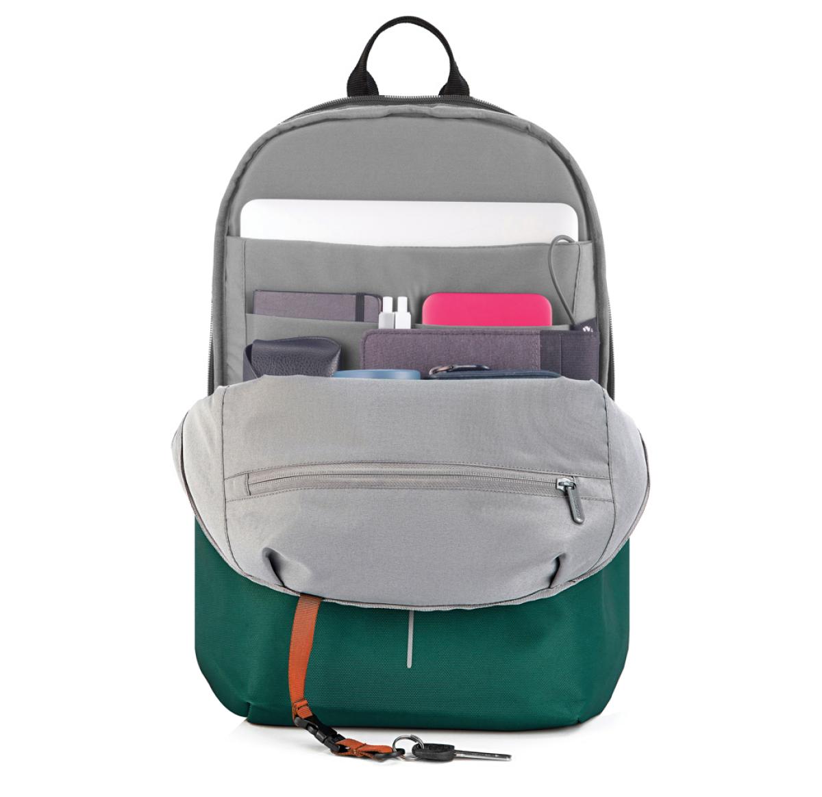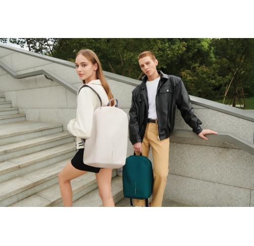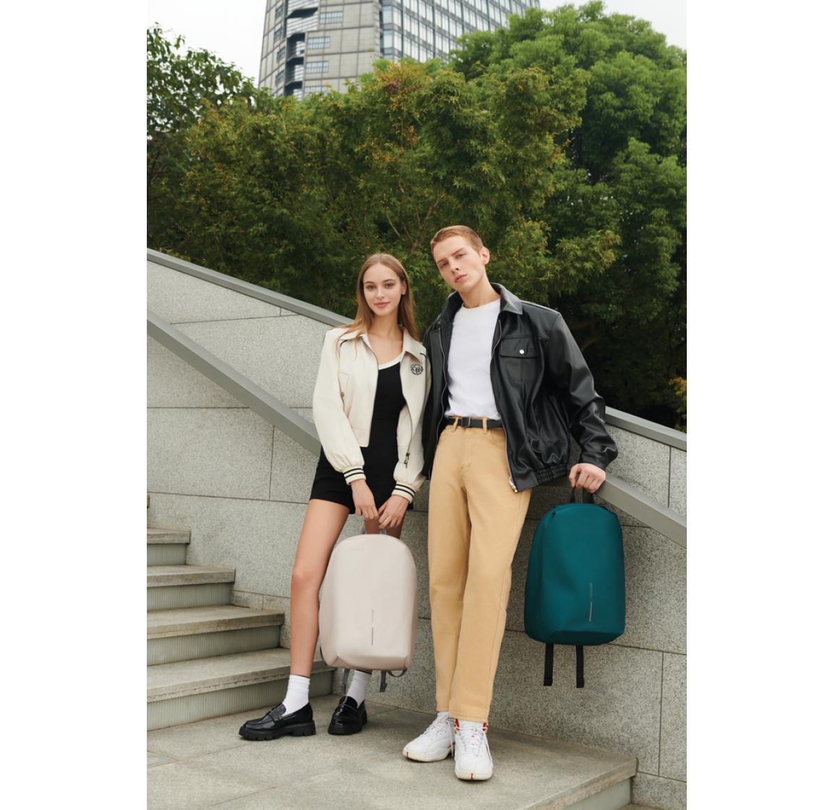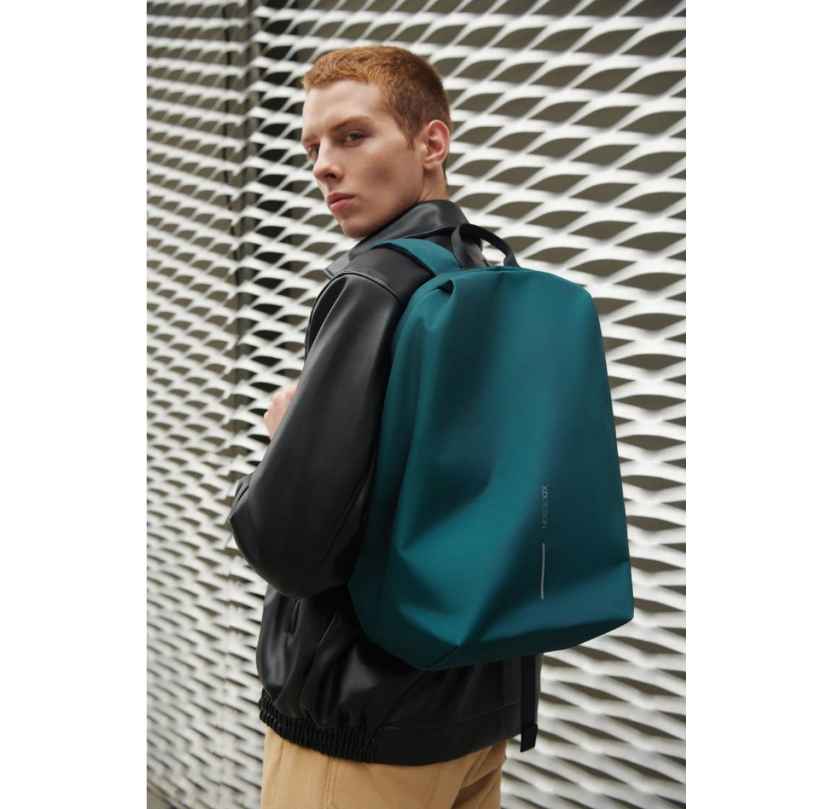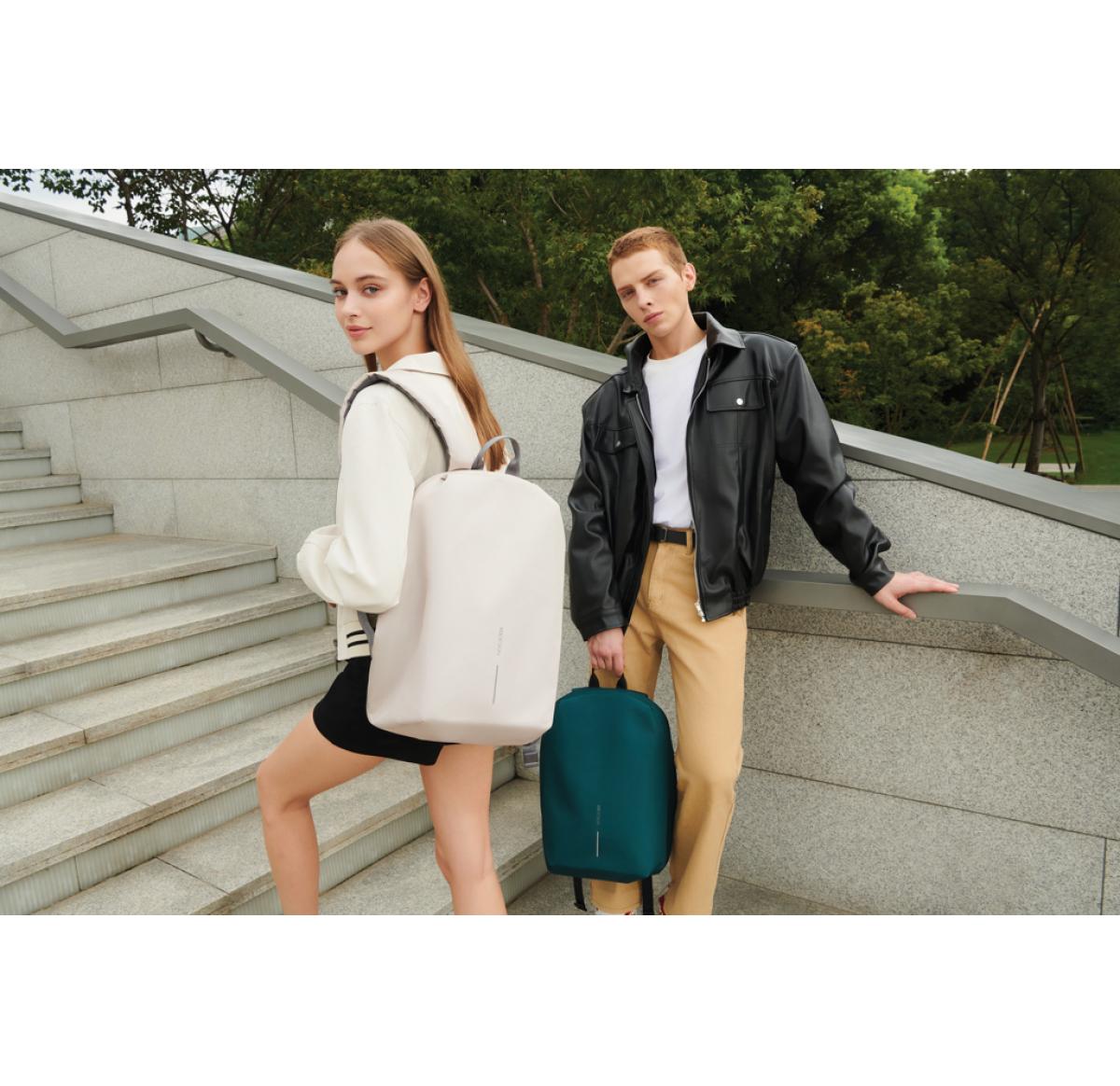For university, school, work, or your next trip, the Bobby Soft Backpack is ready! The iconic Bobby anti-theft design with hidden RFID-protected pockets, no front access, and hidden zippers is now complemented with a twist-lock zipper puller. In the main compartment, you can easily organize your gear with a padded 15.6" laptop compartment, notebook pocket, smart pockets, and a keychain clip. The top of the backpack is expandable giving additional space. This backpack is also equipped with an integrated USB charging port and water-repellent material. Made from R-pet fabric with the AWARE™ tracer. With AWARE™, the use of genuine recycled fabric is guaranteed. 46% recycled content. Registered design®