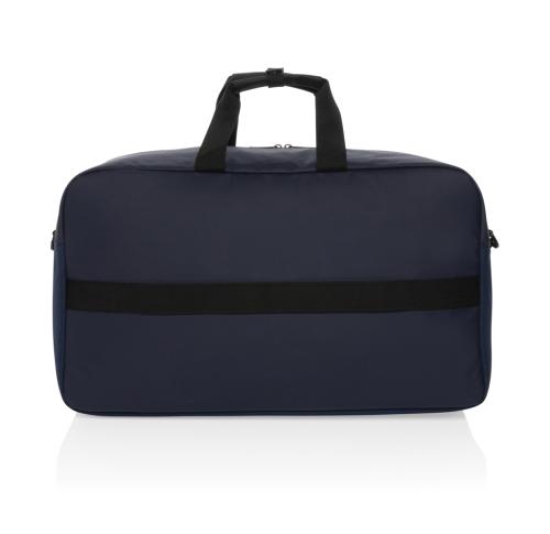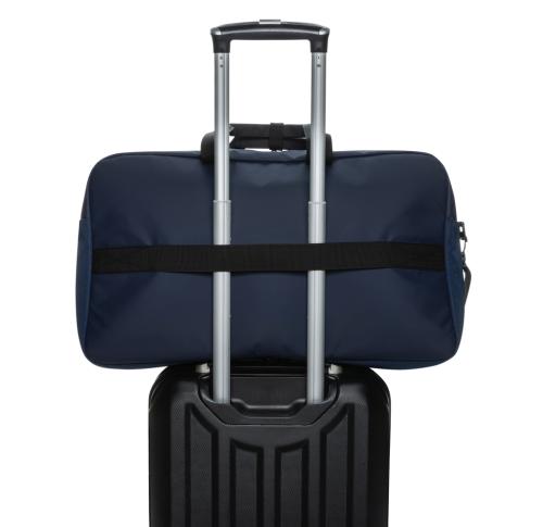 This weekend duffle impresses with its modern and simple look. Its clean design makes the duffle ideal for travel. The roomy main compartment offers plenty of space for your essentials. Made with recycled polyester embedded with the AWARE™ tracer. 2% of proceeds of each product sold with AWARE™ will be donated to Water.org. PVC free.