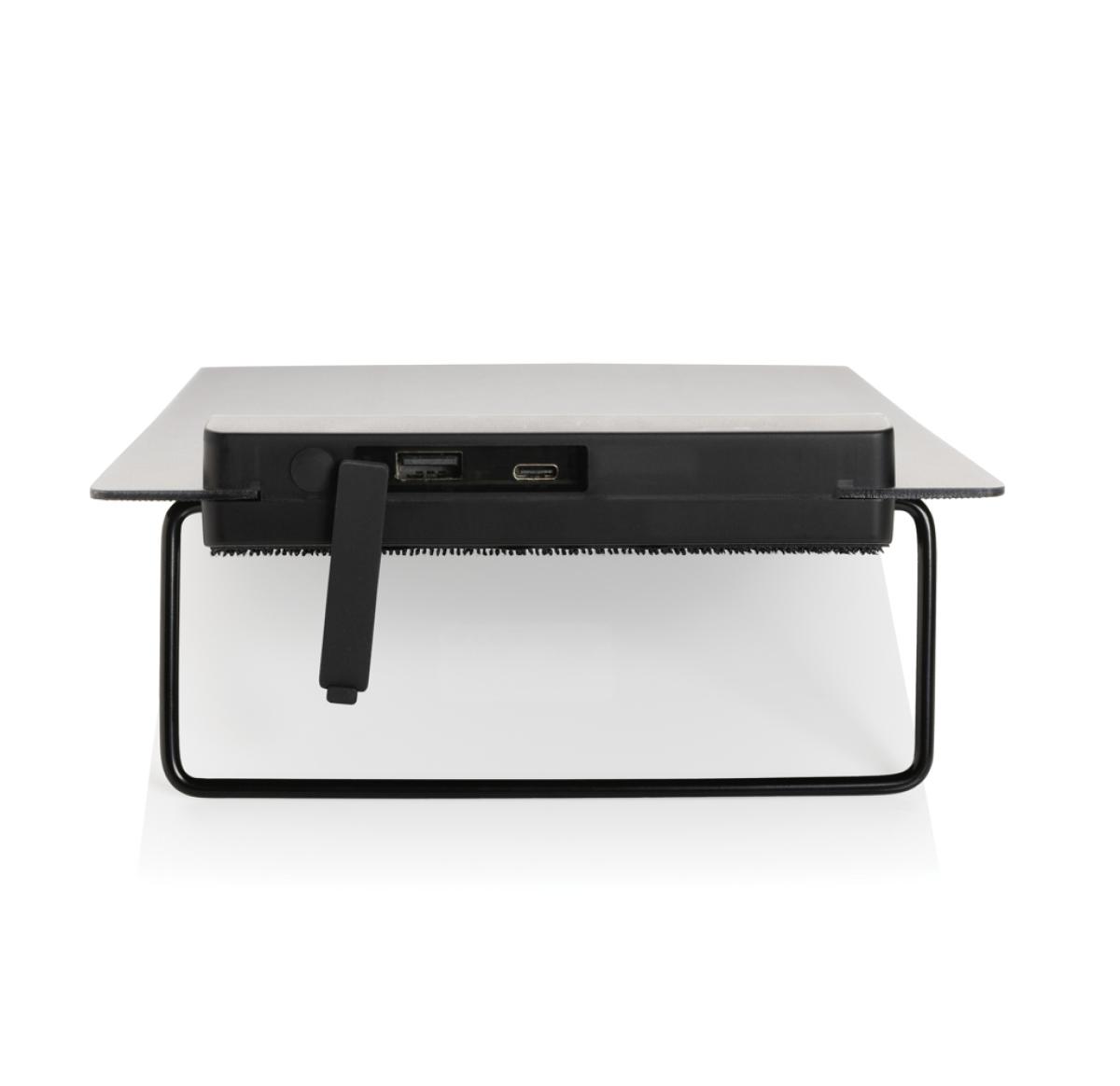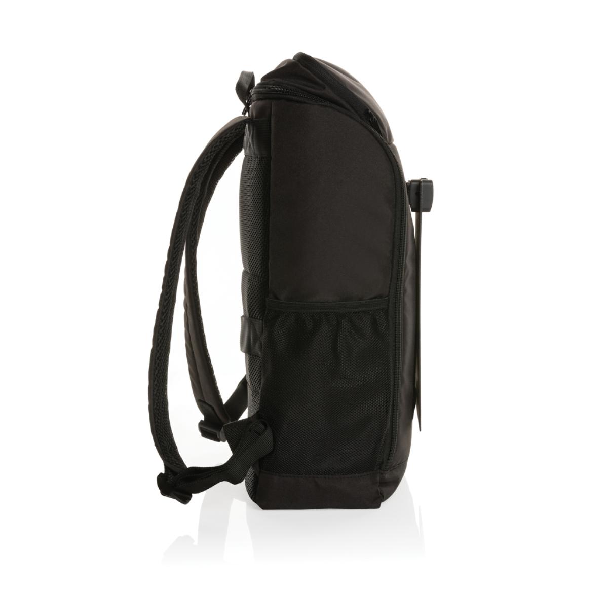 This modern AWARE™ RPET backpack accompanies you on every adventure. With deep vertical front pockets and a neat easy access opening that reveals a roomy interior complete with a 15.6 inch laptop compartment. The attached 5W solar panel allows direct charging to your mobile device, speaker, powerbank or other device. Simply connect your cable to the device while the panel is in sunlight and start charging. Charge rate depends on conditions. The panel uses high quality monocrystalline solar panels with 21% conversion rate. With USB A and Type C output (max 5V/1A) and charge indicator to show charging speed. Charging speed solar: 5V/1000mA. Made with PET material and RCS certified recycled ABS. Including integrated stand function to use the solar panels at an optimal angle. IPX 6 waterproof. Packed in FSC® mix packaging. 2% of proceeds of each AWARE™ product sold will be donated to Water.org. PVC free.