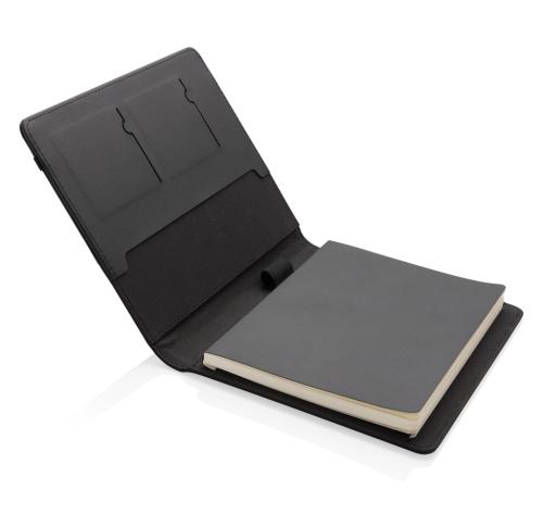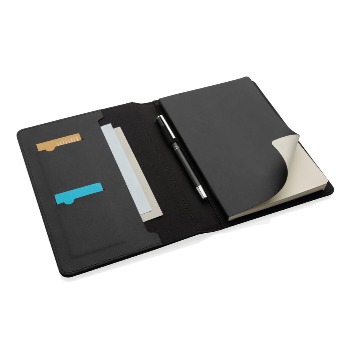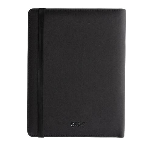 Elevate your professional image with this A5 portfolio crafted from recycled polyester & RCS certified recycled PU. Inside you will find 3 card slots, pen loop, and an A5 document pocket. Stay organised with the refillable A5 notebook featuring FSC® mix cream paper and 80gsm weight. Packed in an FSC® gift box, this portfolio combines style and functionality effortlessly. Made with 100% recycled polyester embedded with the AWARE™ tracer.