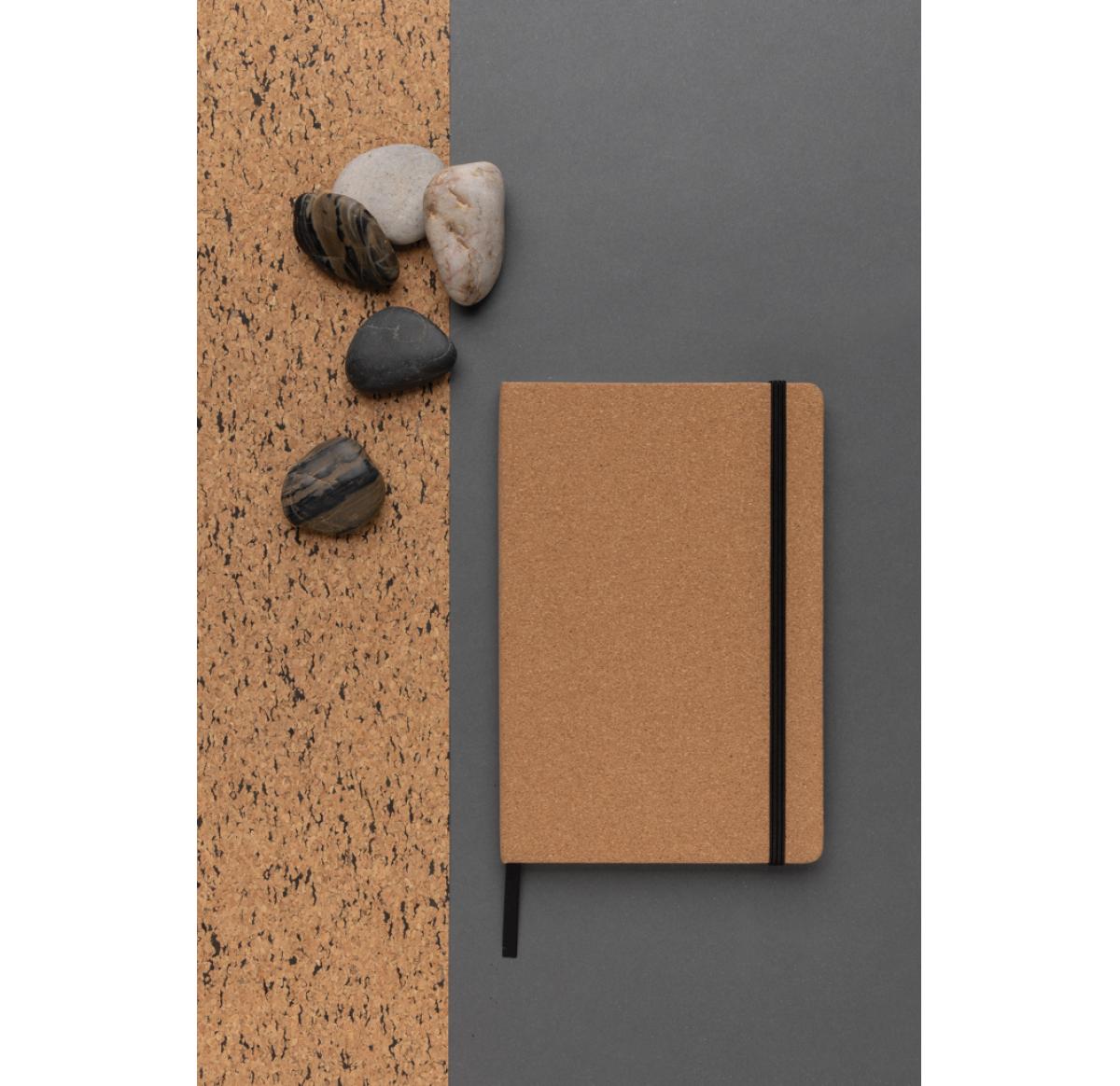 This Stoneleaf A5 notebook is crafted from FSC®cork, while the pages are made from stone paper, offering both natural charm and low impact functionality. The notebook features a black binder, a ribbon marker, and a hardcover for added durability. Inside, there are 80 sheets (160 pages) of high-quality white stone paper with a lined format and 120gsm weight. Packaged in FSC® mix kraft sleeve.