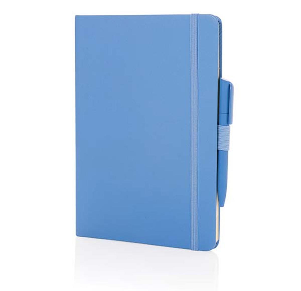 Promotional Branded A5 Recycled Bonded Leather Classic Notebooks Sam A5 RCS Certified Sky Blue